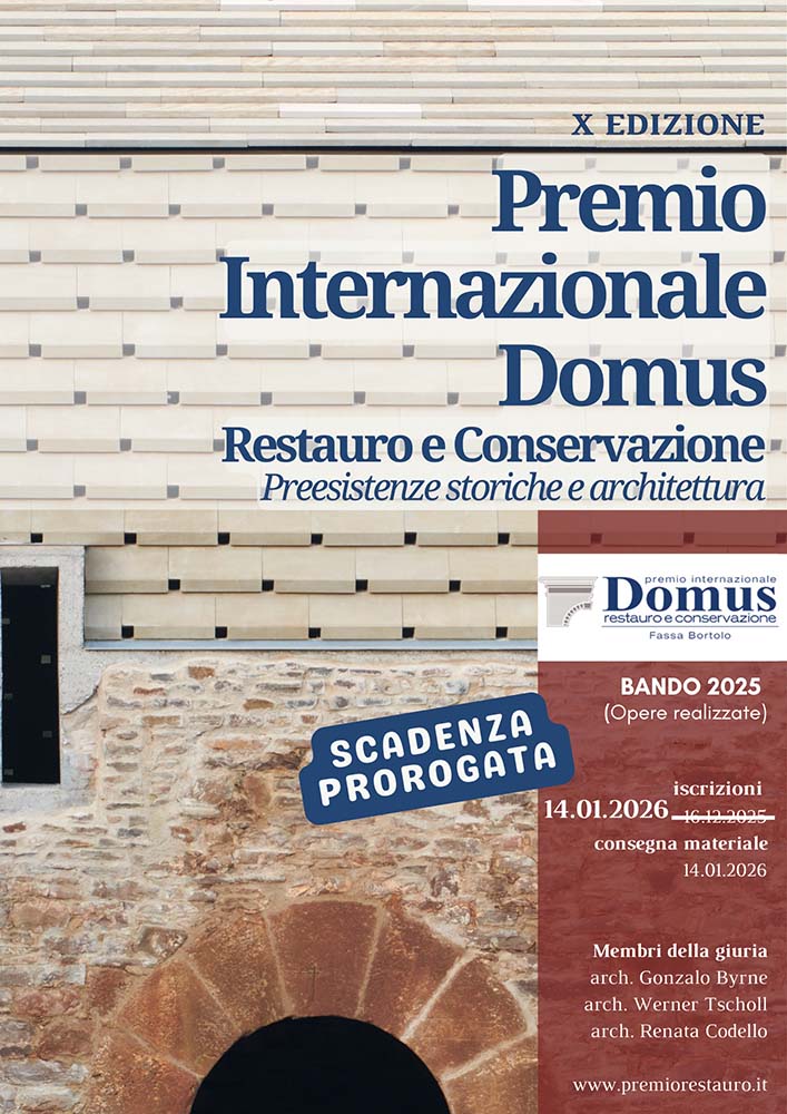 Le iscrizioni alla X edizione del Premio Internazionale Domus Restauro e Conservazione Fassa Bortolo sono state prorogate al 14.01.2026.