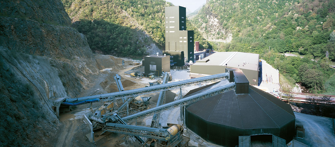 Con una cava di estrazione con frantumazione e lavorazione parzialmente in sotterraneo, lo stabilimento vanta una capacità produttiva di 1.500 tonnellate giornaliere e sistemi evoluti di abbattimento delle polveri, che lo rendono un punto di riferimento per il Nord – Ovest.