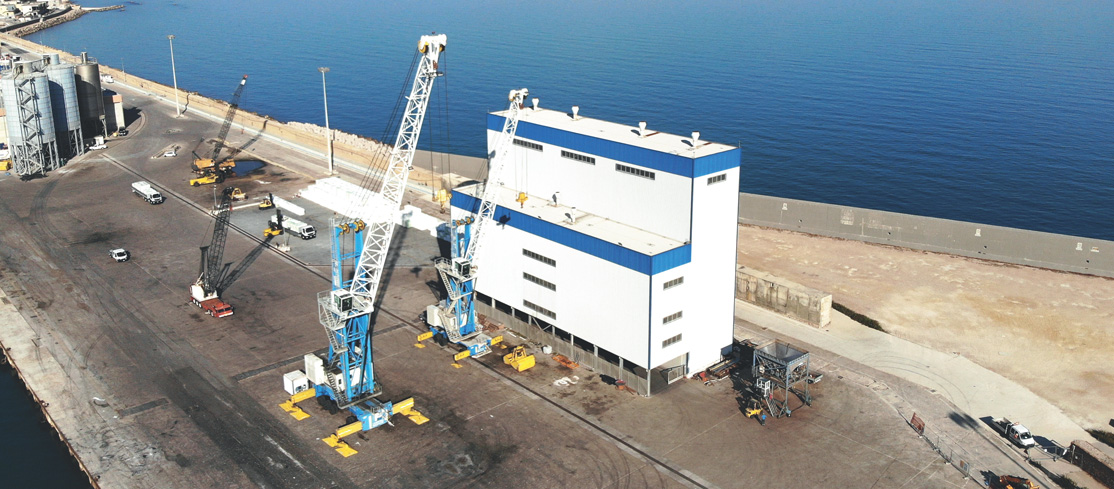 Sito di stoccaggio portuale in grado di ricevere merci sfuse via nave: destinato al deposito di cemento è in grado di stoccare 10.000 ton di materiale in 4 silos alti 35 metri.