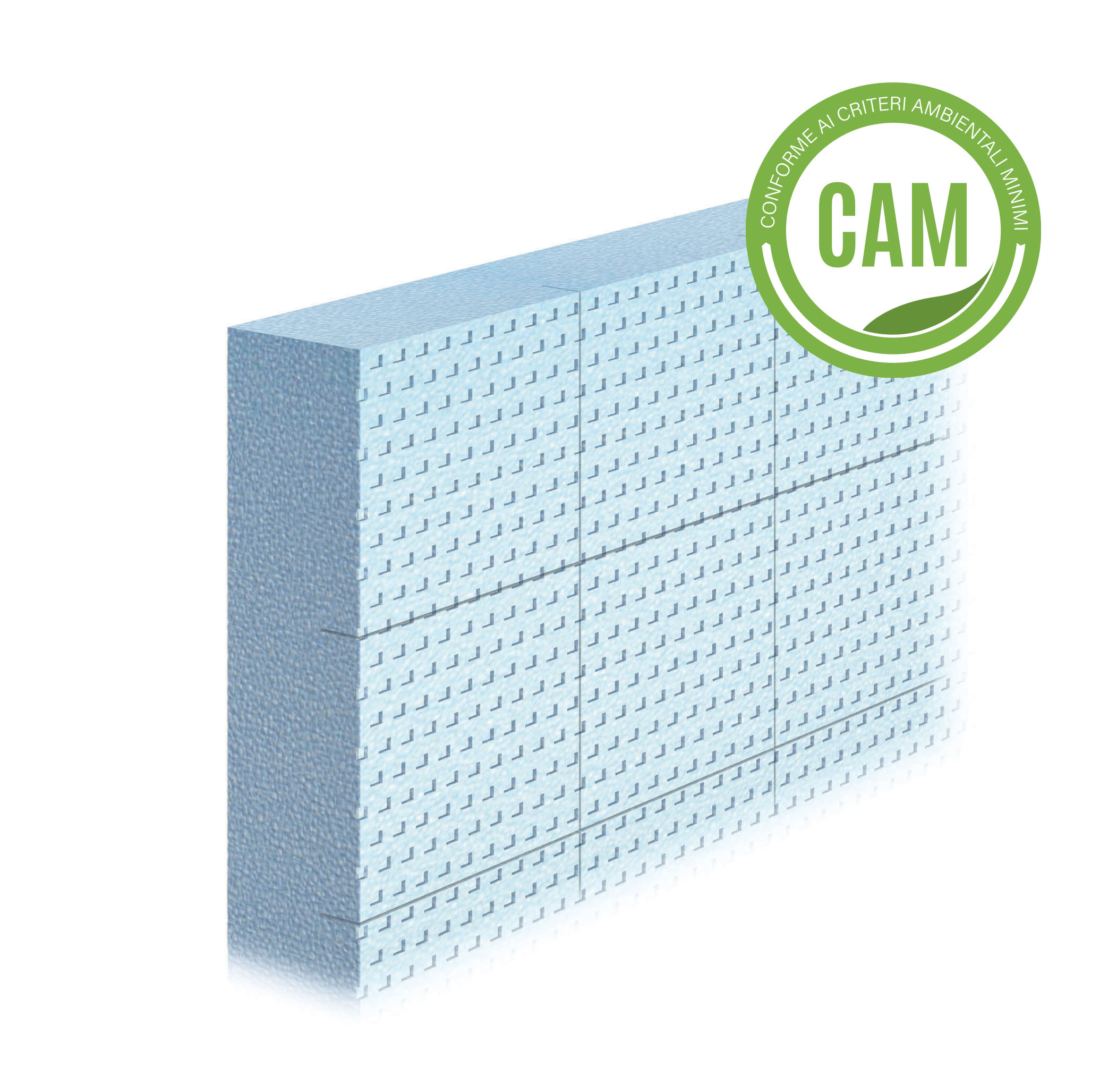 EPS-Sockeldämmplatte, gepresst oder aus Blöcken geschnitten, mit einer Wärmeleitfähigkeit von 0,034 W/(m·K).