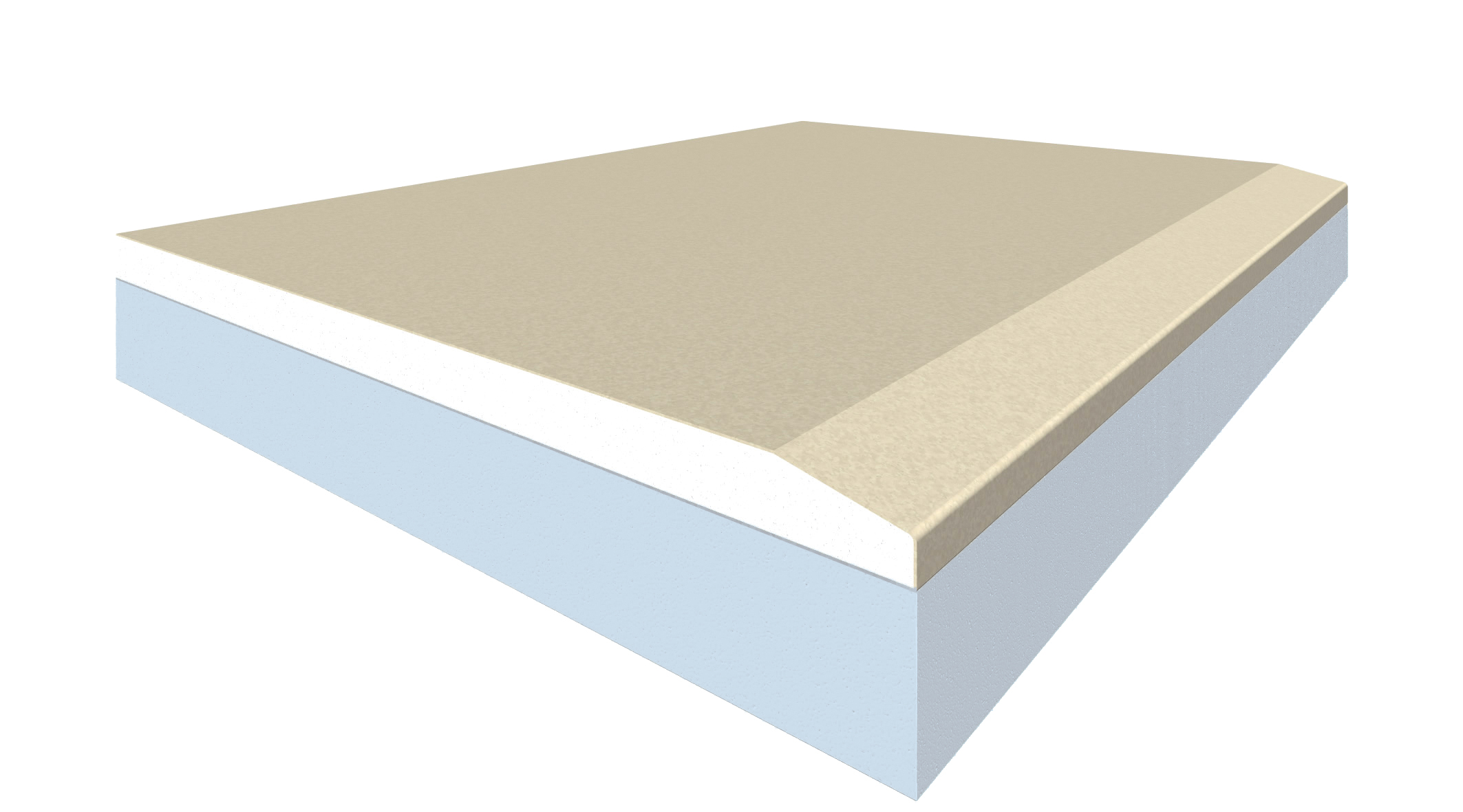 Platten auf deren Rückseite eine Dämmplatte aus extrudiertem Polystyrol geklebt wurde (entsprechend der Norm EN 13164), mit einer Volumenmasse gleich 30 kg/m³ ± 3% und einer Wärmeleitfähigkeit Lambda gleich 0,032-0,035 W/mK: Platte wie Dämmplatte können jeweils unterschiedliche Schichtstärken aufweisen, und zwar je nach den systembedingten erforderlichen Eigenschaften.
