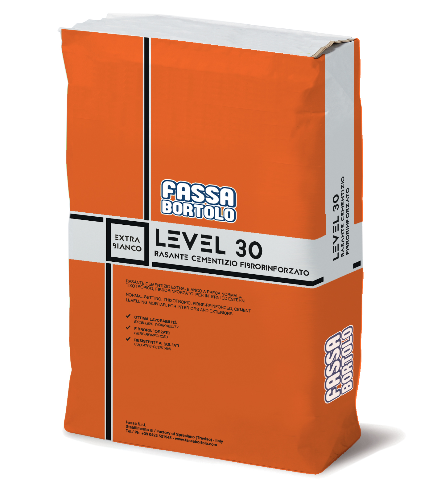 LEVEL 30 wird zum Ausgleichen von sowohl unregelmäßigen als auch saugenden Oberflächen im Innen- und Außenbereich verwendet, horizontal und vertikal. Geeignet, um nicht lotrechten Wänden und unregelmäßigen oder beschädigten Verputzen vor der Verfliesung mit Keramik oder dem Auftrag von Dichtbahnen (wie AQUAZIP GE 97 usw.) Planebene zu verleihen.
