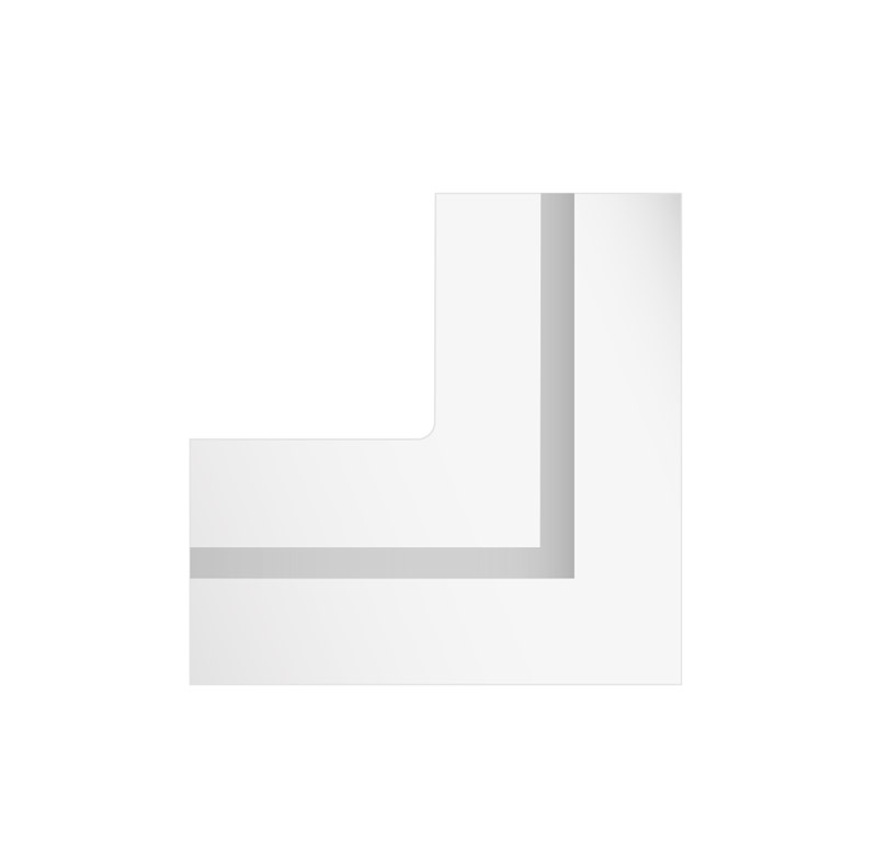 L-förmiges Verbindungselement bestehend aus Gipskarton GypsoARYA HD BA13 mit integrierter Profilleiste zu 18 mm Breite aus stranggepresstem Aluminium samt Schutzblende, für den Einbau eines "LED-Streifens". Im Innenbereich zu verwenden.