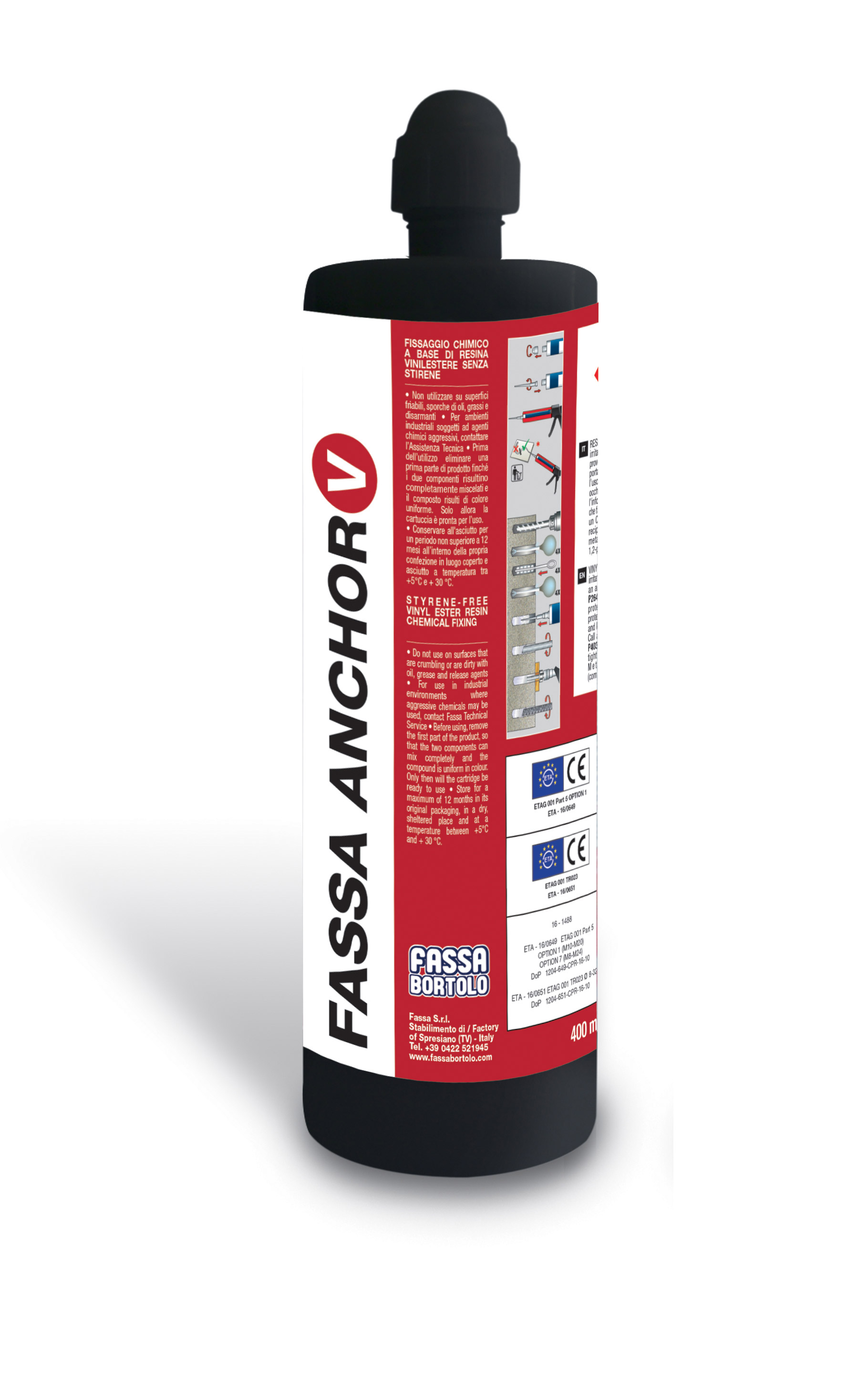 FASSA ANCHOR V wird zur chemischen Verankerung von Metallstäben in Bohrlöcher verwendet, und zwar bei Baustoffen wie Beton, Stein, Vollziegel, Lochziegel, Hohllochziegel und Holz.