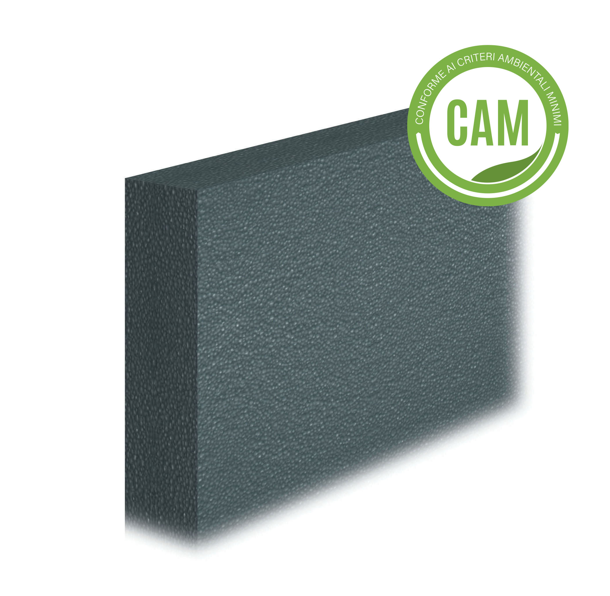 Aus Blöcken zugeschnittene Wärmedämmplatte EPS MIT GRAPHIT mit einer Wärmeleitfähigkeit von 0,031 W/(m·K). Entspricht den CAM-MUK