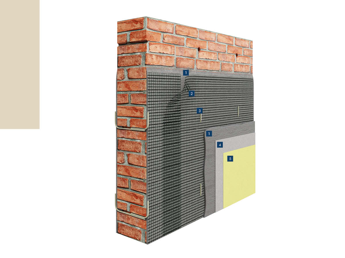| Components | Required: fibreglass meshes, cement or lime-based mortar Optional: pre-formed or braided connectors |