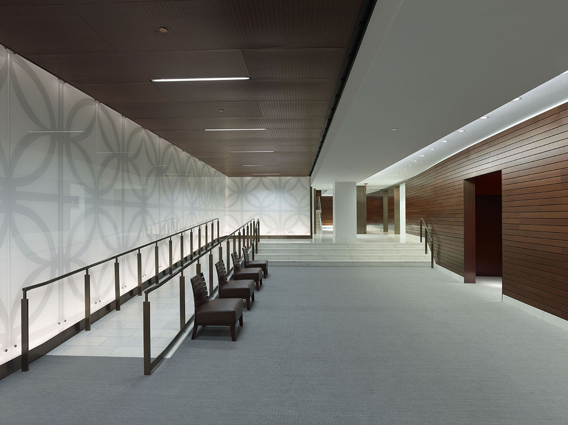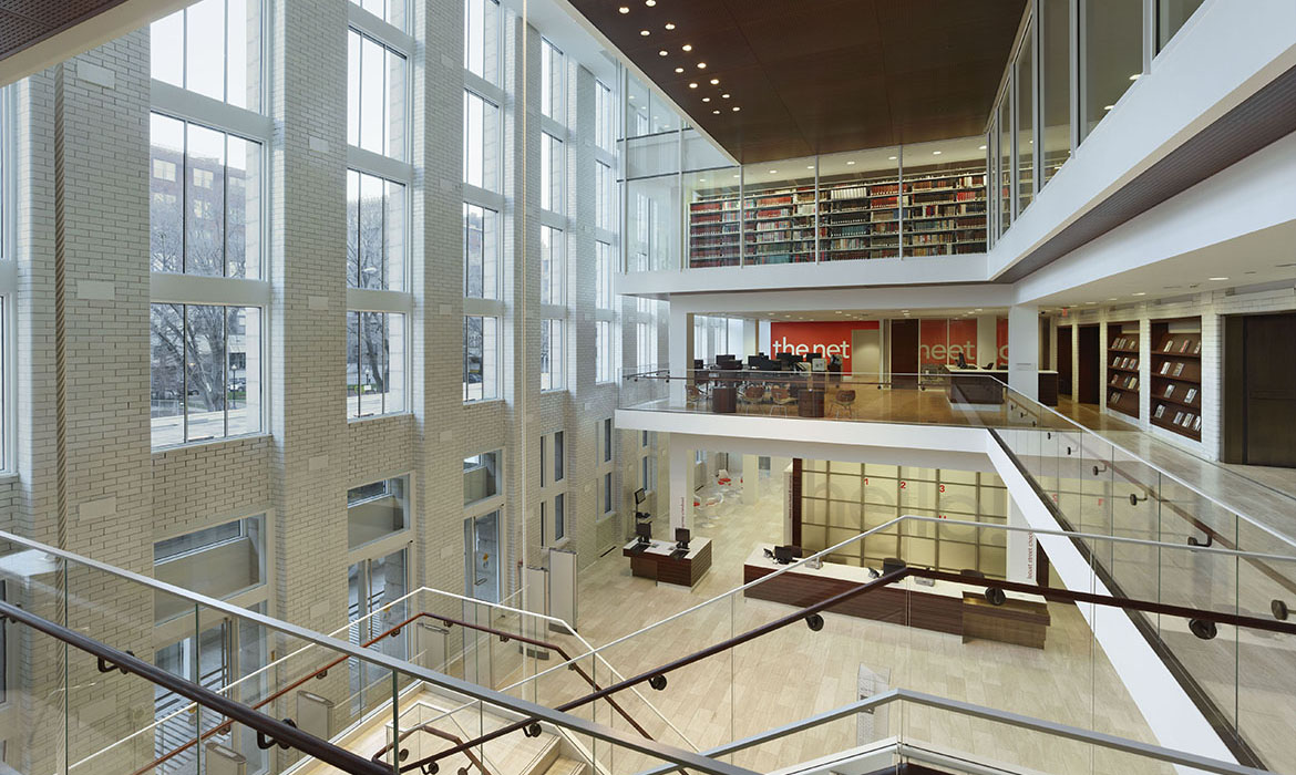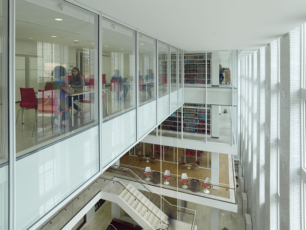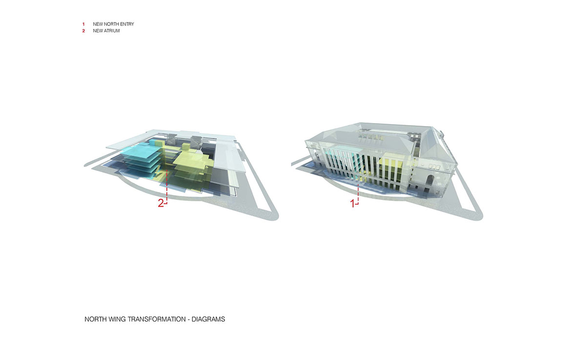 La trasformazione è avvenuta nell’Ala Nord. Le cataste di libri sono state spostate e un nuovo “edificio all’interno dell’edificio” è stato inserito, questa volta un atrio pubblico a piu’ piani. Per far fede all’intento originario di Gilbert, le “piattaforme galleggianti” che circondano il nuovo atrio non toccano i muri interiori dell’ala nord. I livelli inferiori dell’atrio sono aperti al pubblico mentre quelli superiori ospitano le raccolte di libri consultabili solo dallo staff. Questi libri, che ricordano le collezioni antiche cui ora il pubblico può accedere, sono diventati un elemento importante del complesso. Un tetto a volta e sistemi d’acqua caratterizzano il nuovo ingresso pubblico dell’Ala Nord. Come atto di rispetto verso Cass Gilbert, la nuova struttura è stata costruita in modo da non toccare l’edificio.