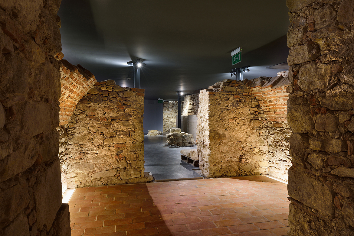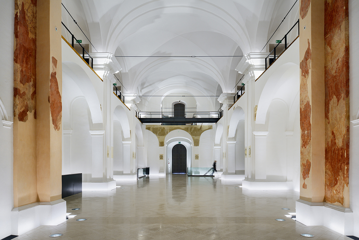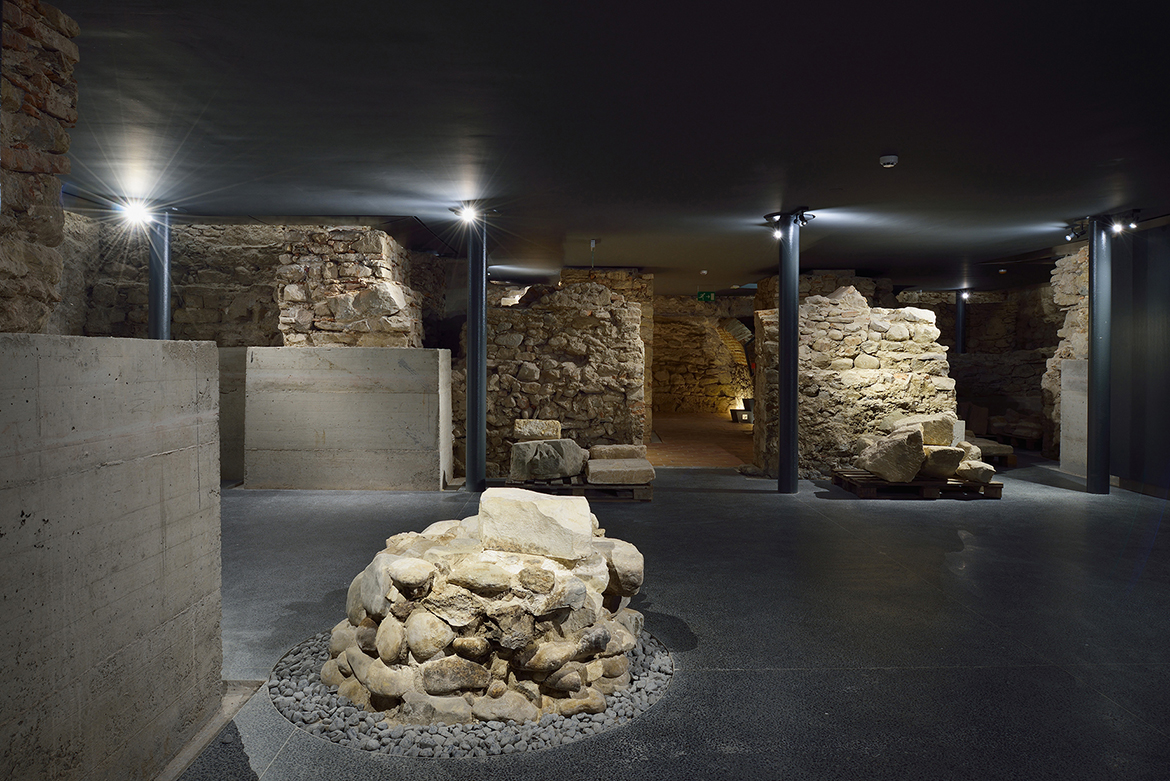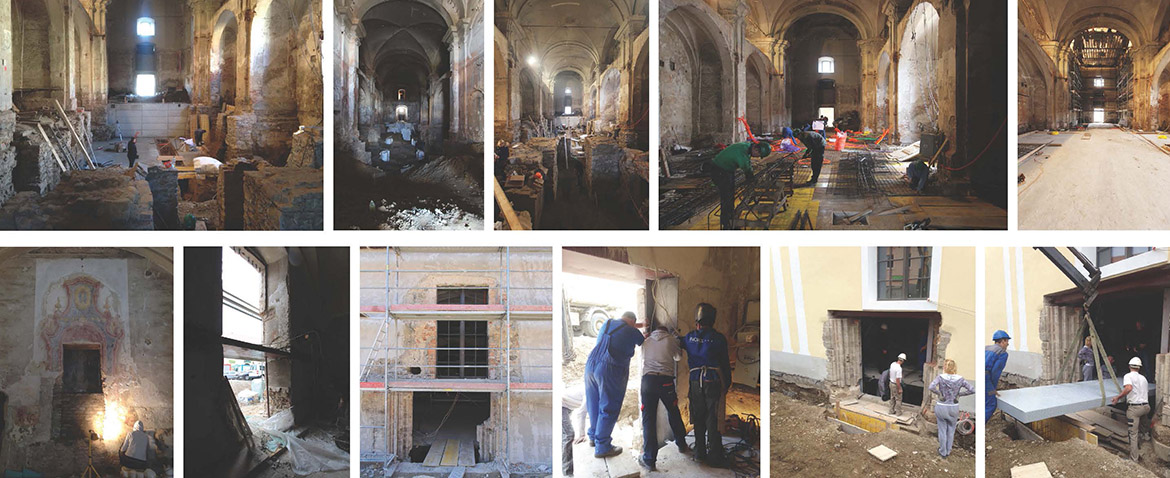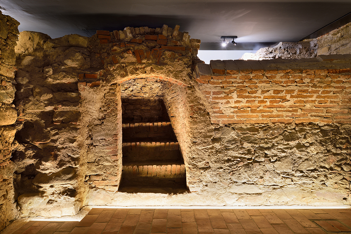 The restoration process of Minorite church and its Baroque origins brought several surprises. These resulted in much bigger and richer available new spaces than it was originally planned. The restoration works unveiled foundations of Romanesque pillars under the church floor, on the level of the crypt. This brought about changes in the project which made almost the entire ground level with its exceptional historical importance accessible to the public, offering a venue for more intimate, private events. The new church floor is a plate which separates the two levels without touching the walls. All the necessary installations, including heating, airing, lighting and sound systems, are embedded into the sides of the plate.