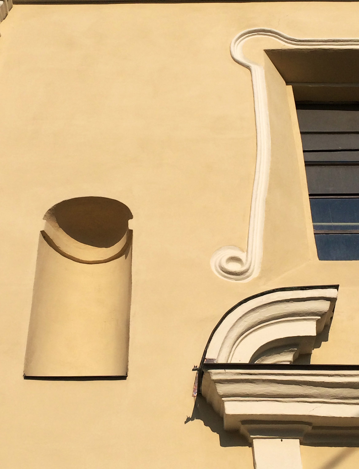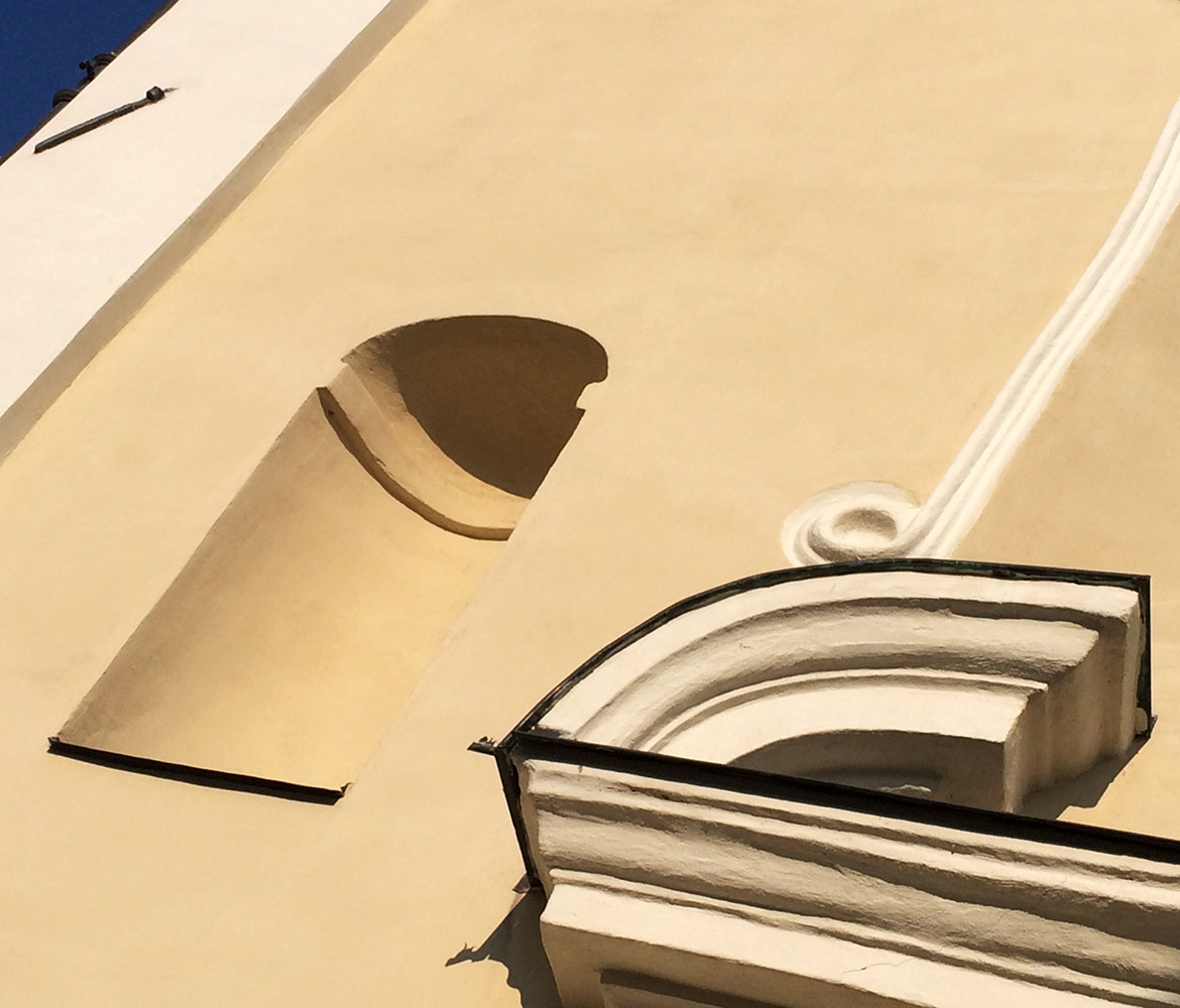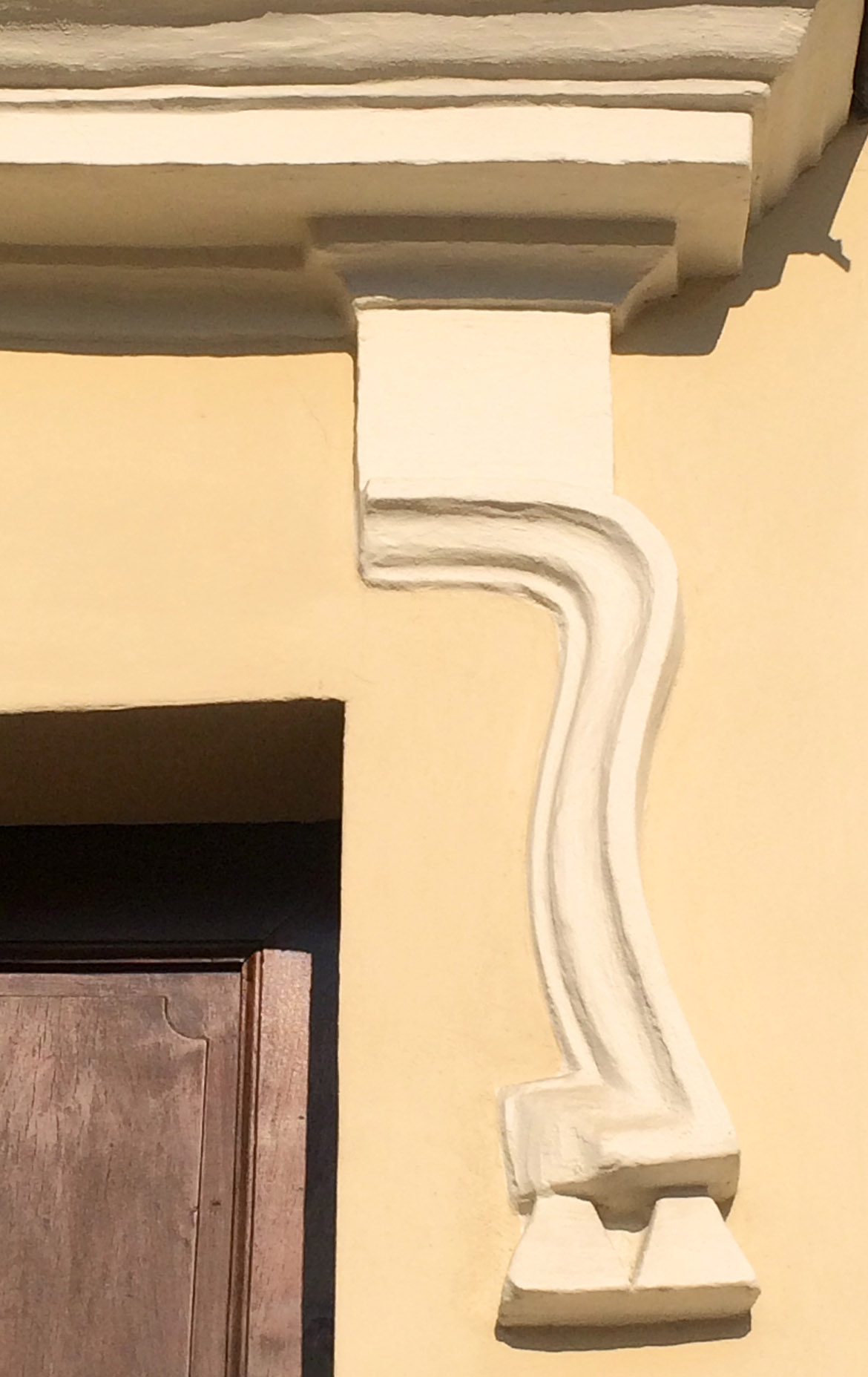 Successivamente si è provveduto alla ridecorazione della facciata con intonaco colorato a base di calce applicato sull’intonaco di fondo con frattazzo di acciaio inox o in plastica e seguente tinteggiatura a pennello secondo cromie concordate con la Soprintendenza e desunte dall’analisi stratigrafica oltre che da ricerca storica .
