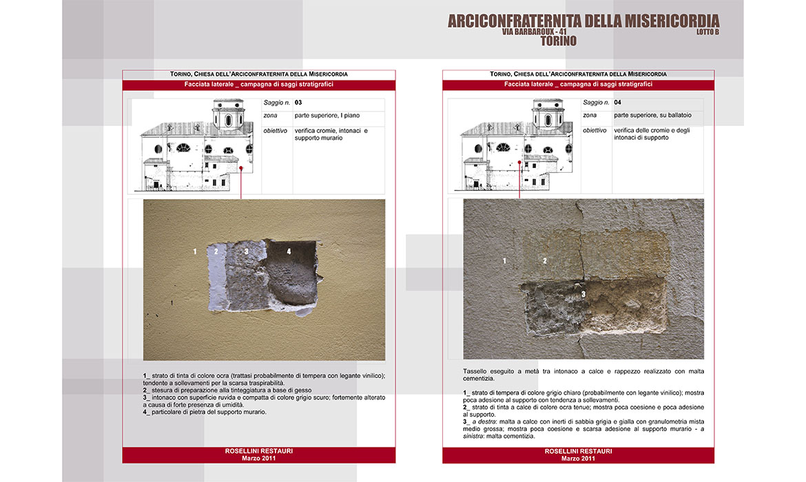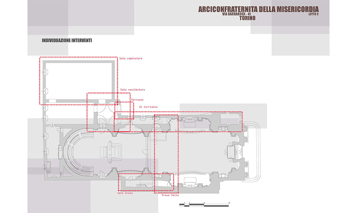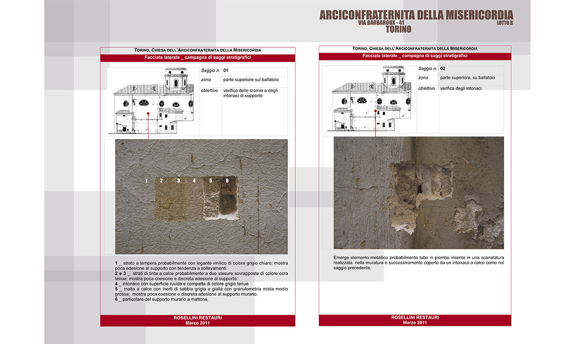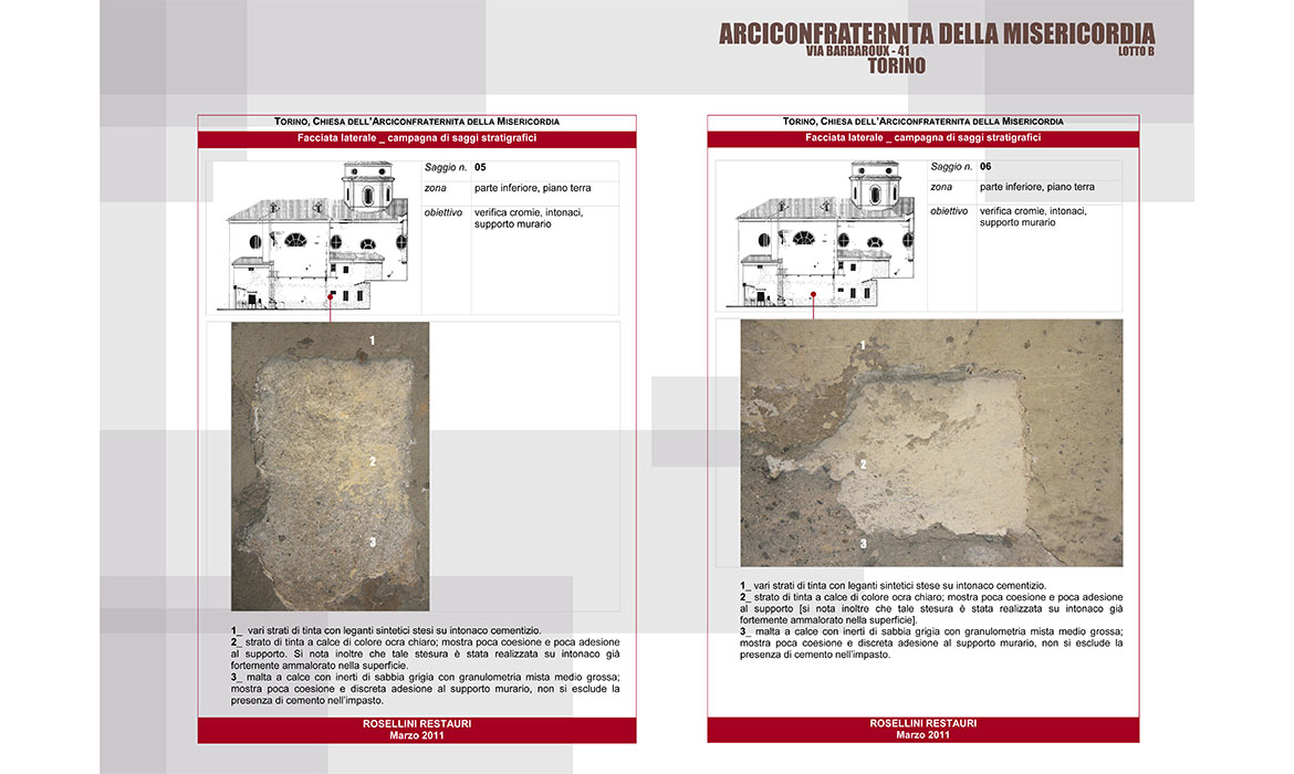 Le opere di recupero e restauro presso la Chiesa della Confraternita della Misericordia in Torino si sono evolute secondo una programmazione pluriennale articolata in lotti successivi volta al recupero dell’immagine e dei valori artistico architettonici delle singole parti.