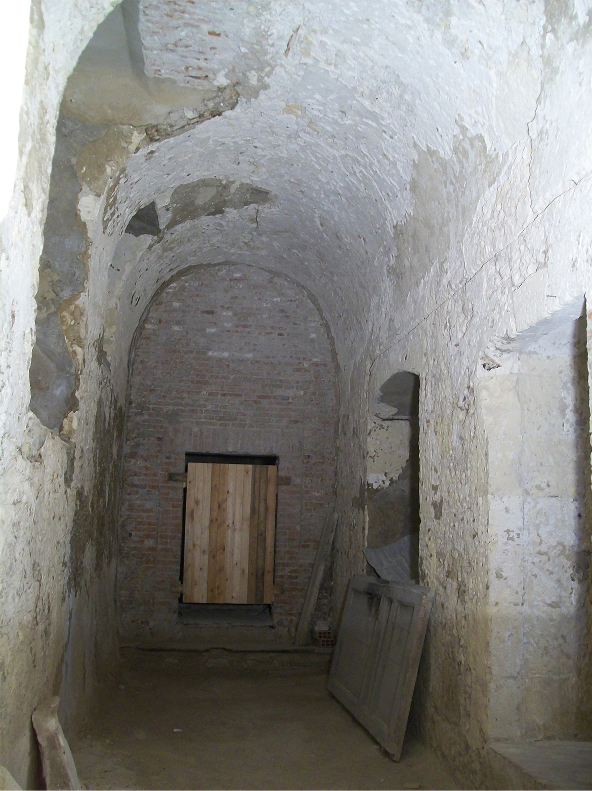 In the central local and in the chapels, by means of the demolition of the clay- bricks interlining, added in a second moment, of the underlying concrete and plaster, it was possible to verify the masonry of the vault and of the wall in its entirety, already object of a partial analysis conduct through cognitive reviews, dated February 2007, useful to write the definitive planning.