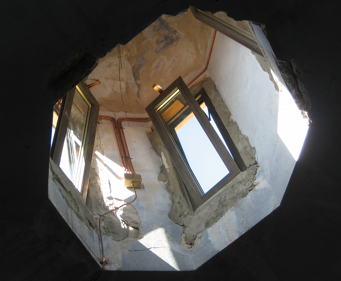 The cognitive reviews dated February 2007 allowed to verify the structural damage presents in the last room of the second floor, on the right side, where the masonry extends orthogonally with the Church main facade’s masonry: in this case it has been chosen to apply a series of crossed inner chain to reinforce the masonry’s corner.