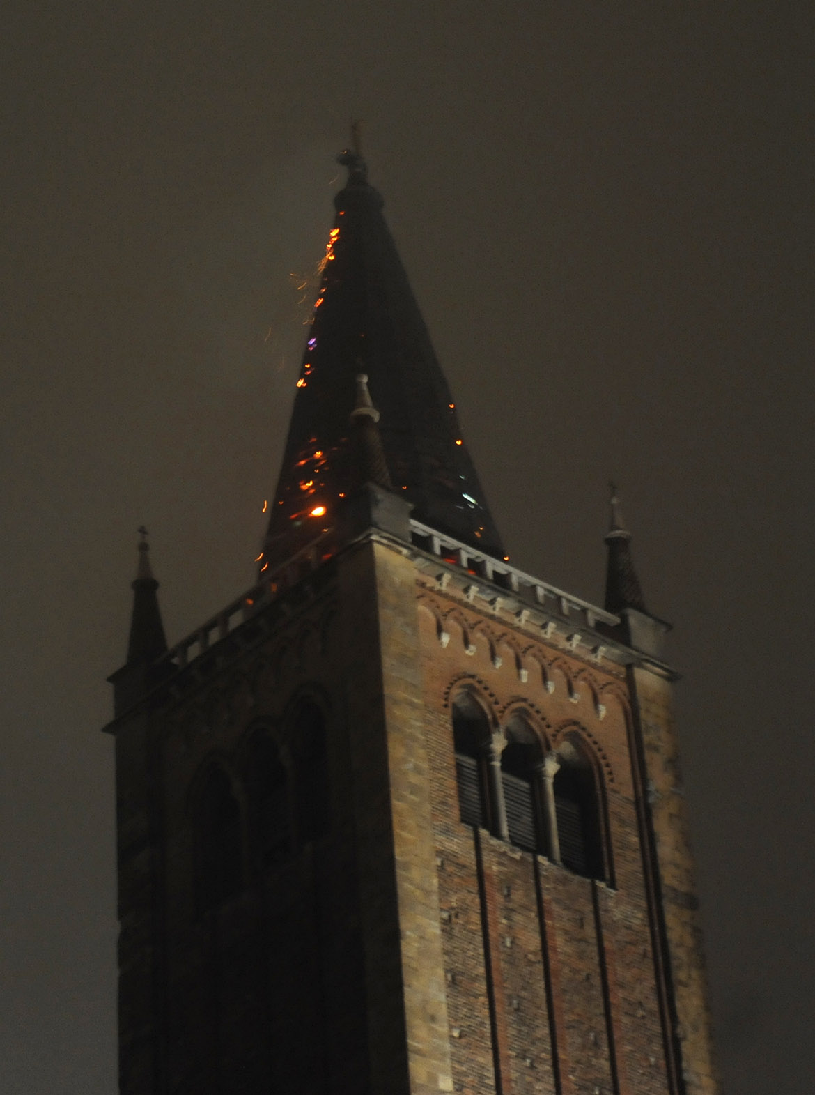 Nella notte del 22 Ottobre 2009 un fulmine colpisce il campanile della Cattedrale di Parma, provocando l’incendio nella cuspide trecentesca.
