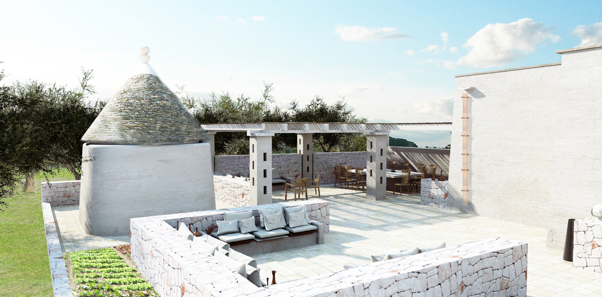 La sfida progettuale è stata mantenere l’integrità e la bellezza originaria dei trulli, ampliando l’immobile e rendendolo una residenza accogliente dotata di tutti i confort, pronta ad ospitare più stanze da letto, bagni e zone living. Particolare attenzione è stata data anche al recupero degli esterni, nel restauro dei muri a secco, secondo le tecniche tradizionali, e nel valorizzare la vista sensazionale della Valle.