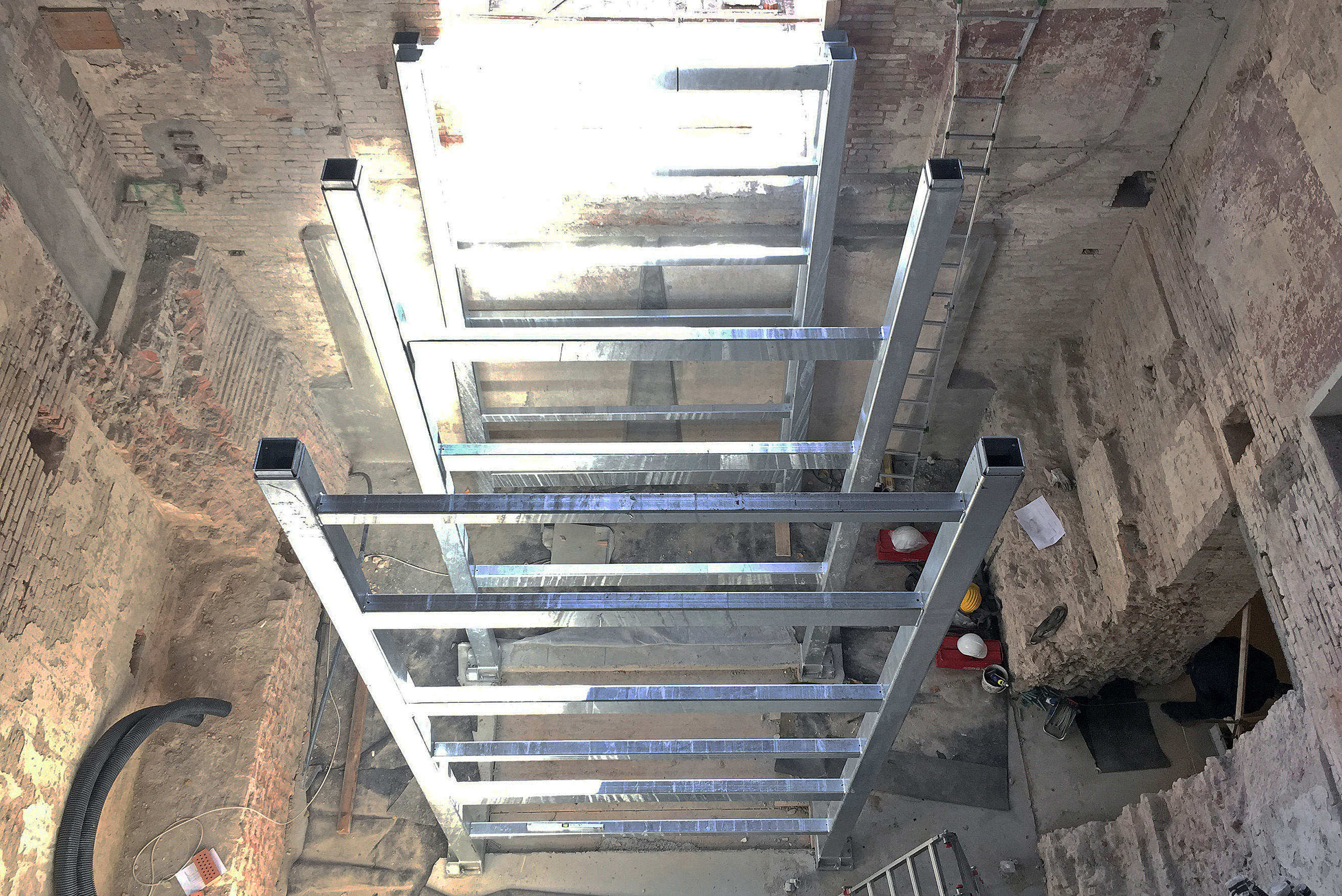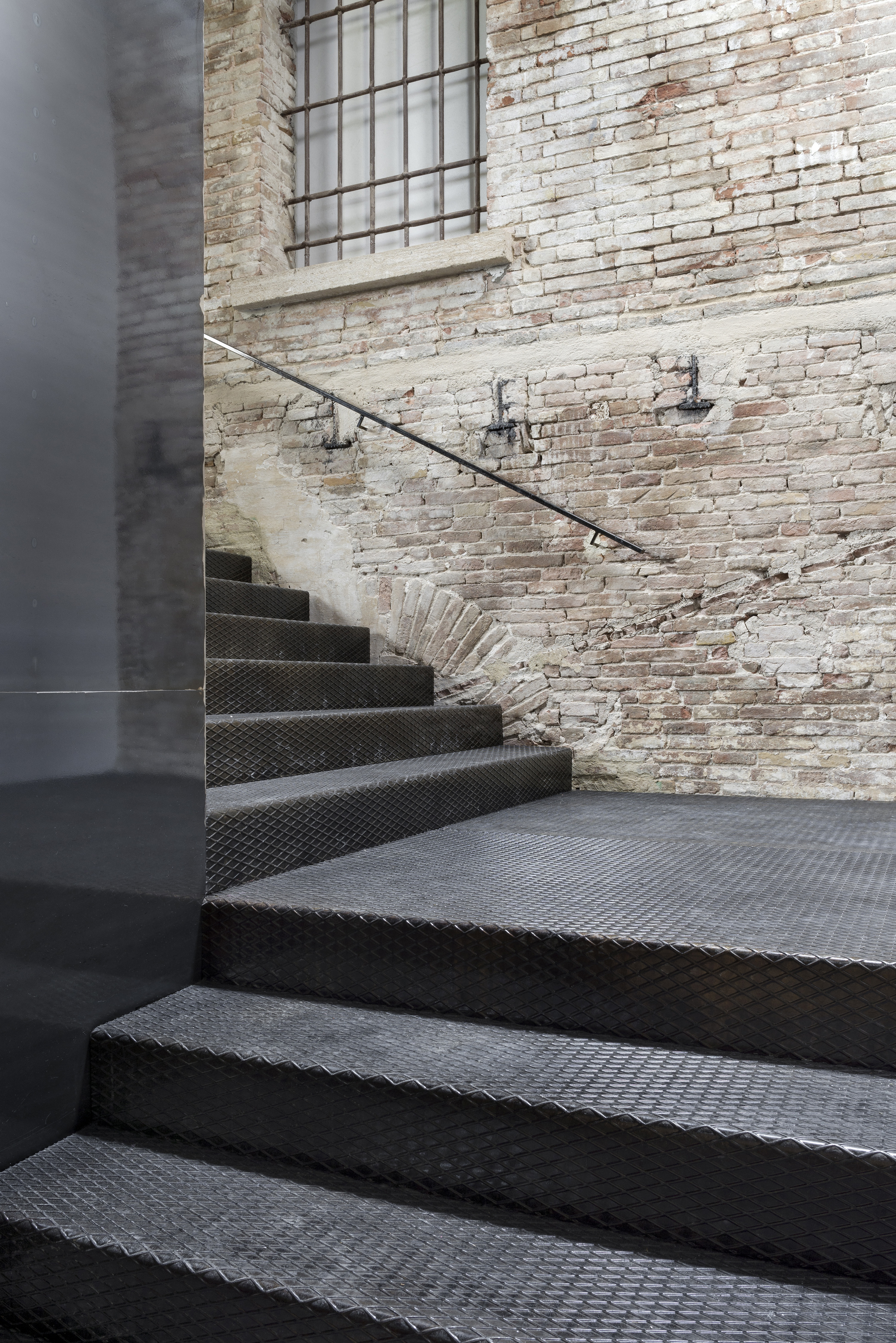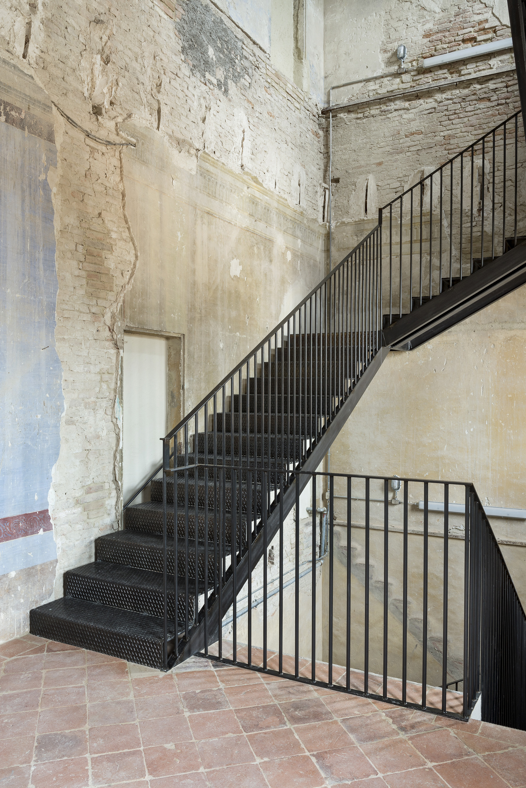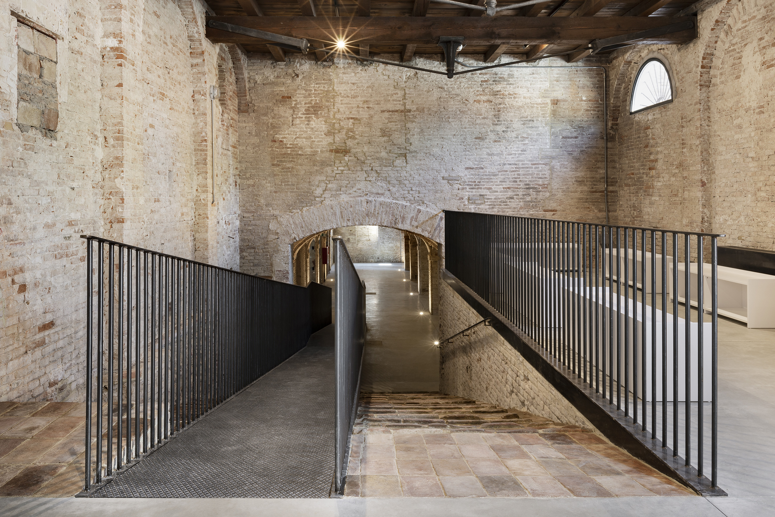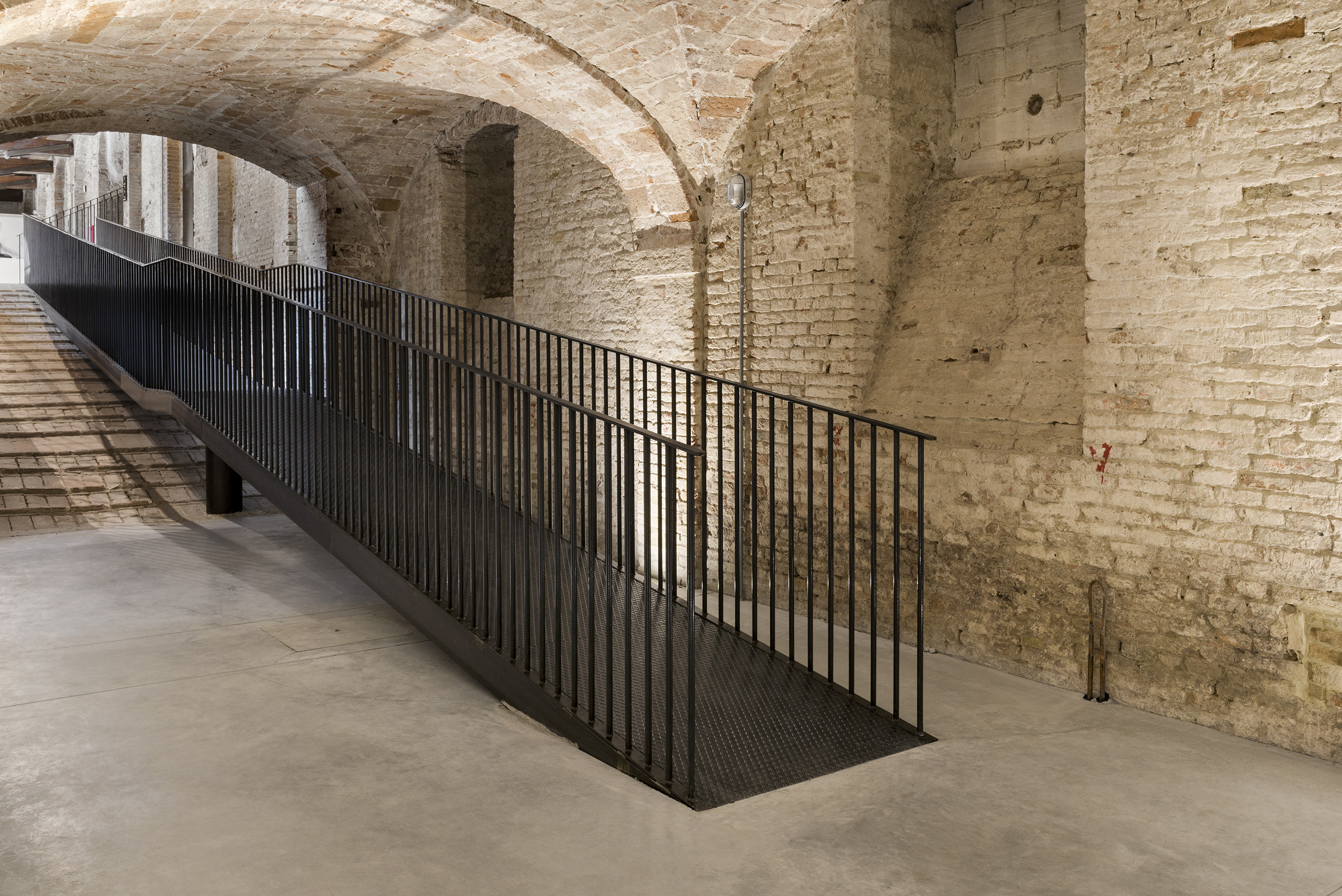 Ultimo obiettivo è l’accessibilità. Tutte le barriere sorte a seguito degli ampliamenti del compendio sono superate con rampe in acciaio acidato. Nuove forme pure prive di imperfezioni che entrano in relazione con le superfici incrostate e corrose dal tempo.