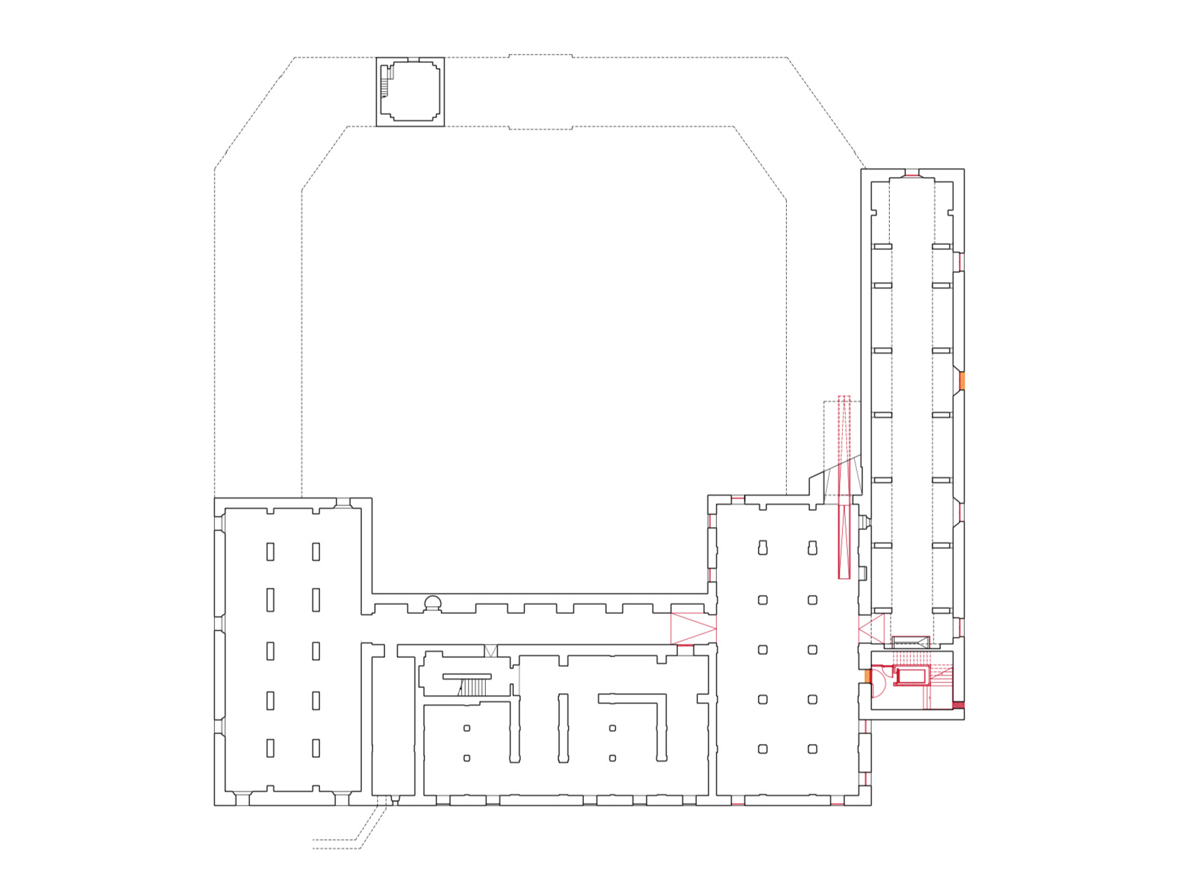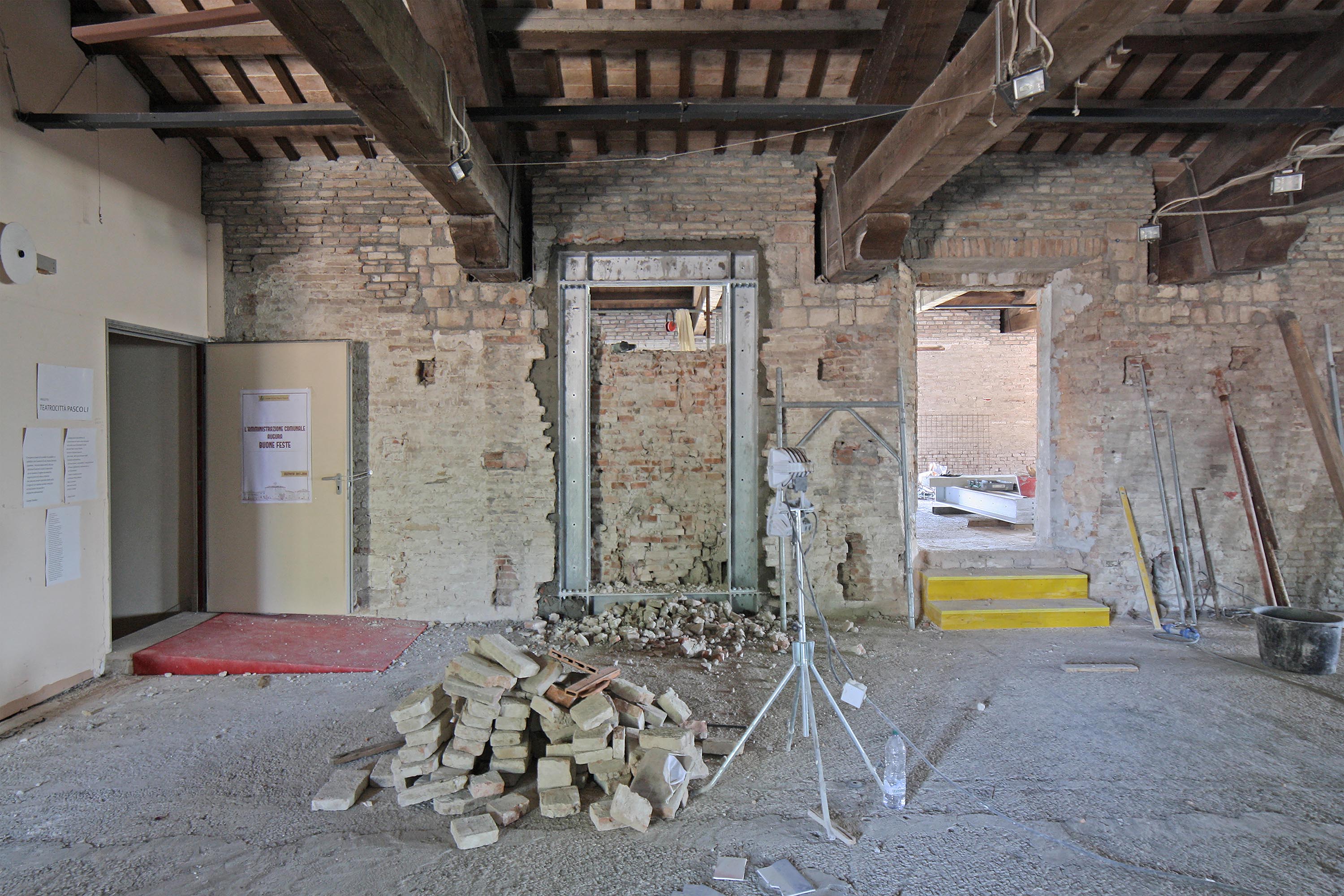 La conservazione degli ambienti è il secondo obiettivo. Il monumento è concepito come divenire risultato di continue trasformazioni. Le sale lasciate prive di intonaco mostrano la tessitura delle murature in mattoni e testimoniano le sovrapposizioni, le tracce delle differenti fasi costruttive.