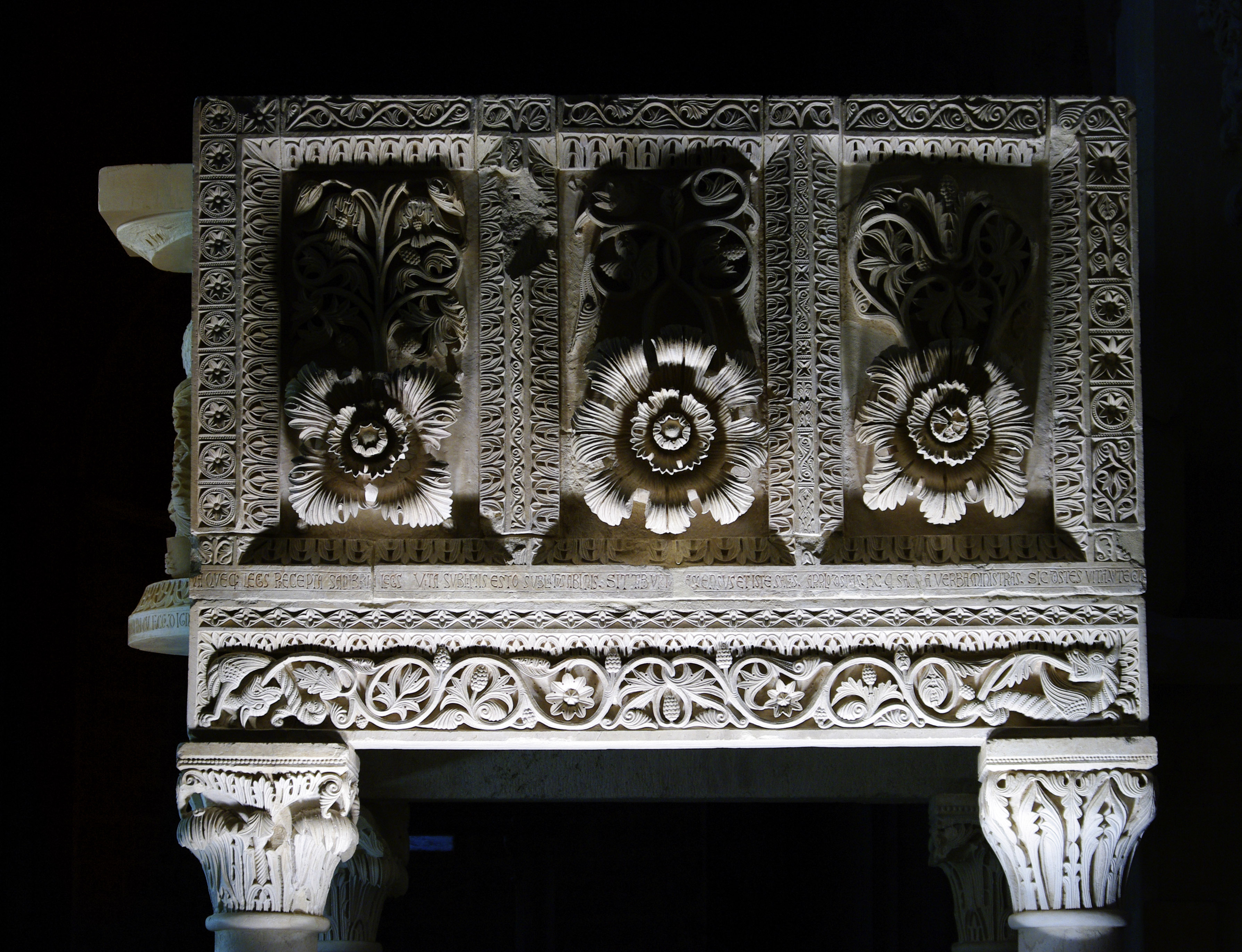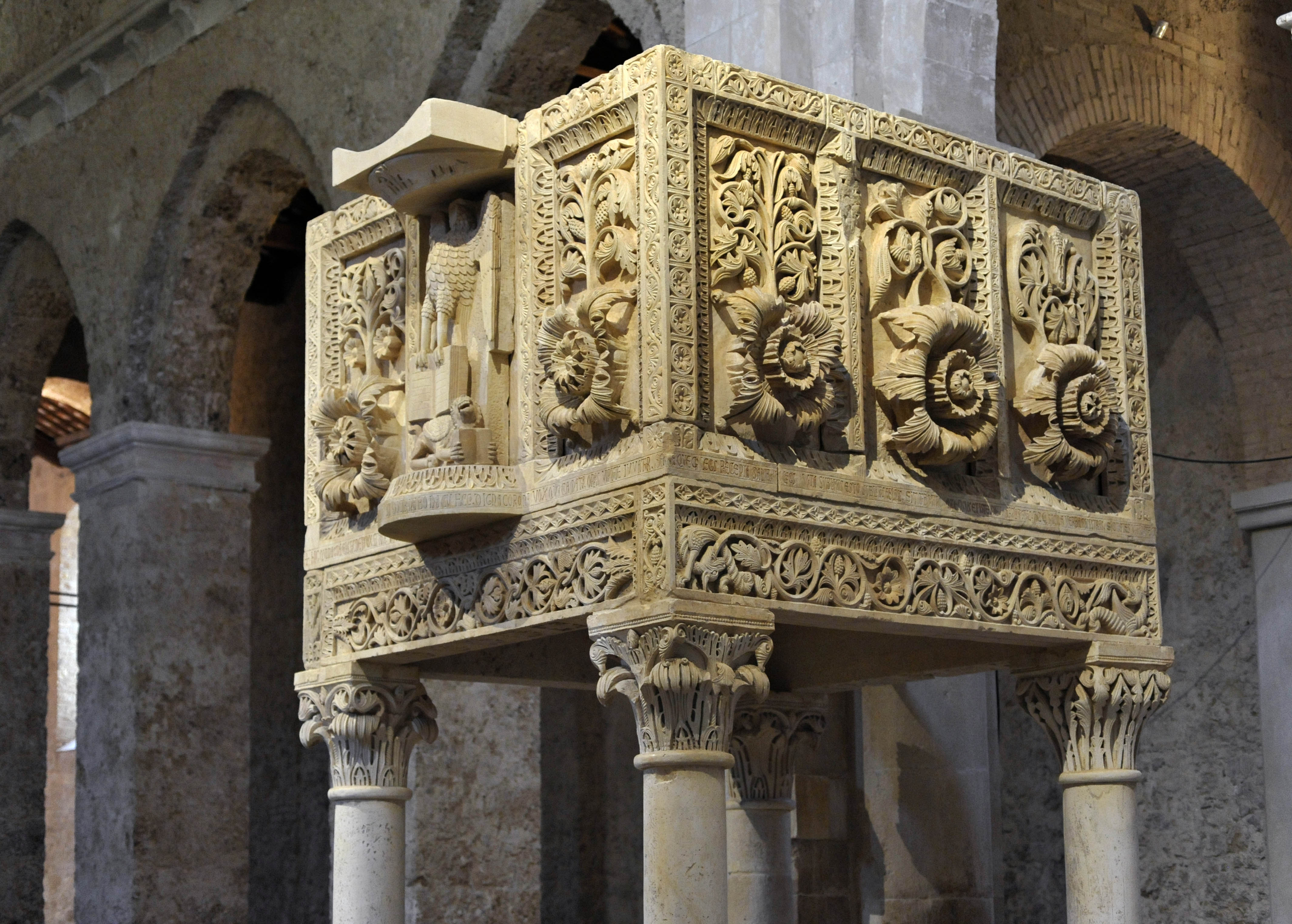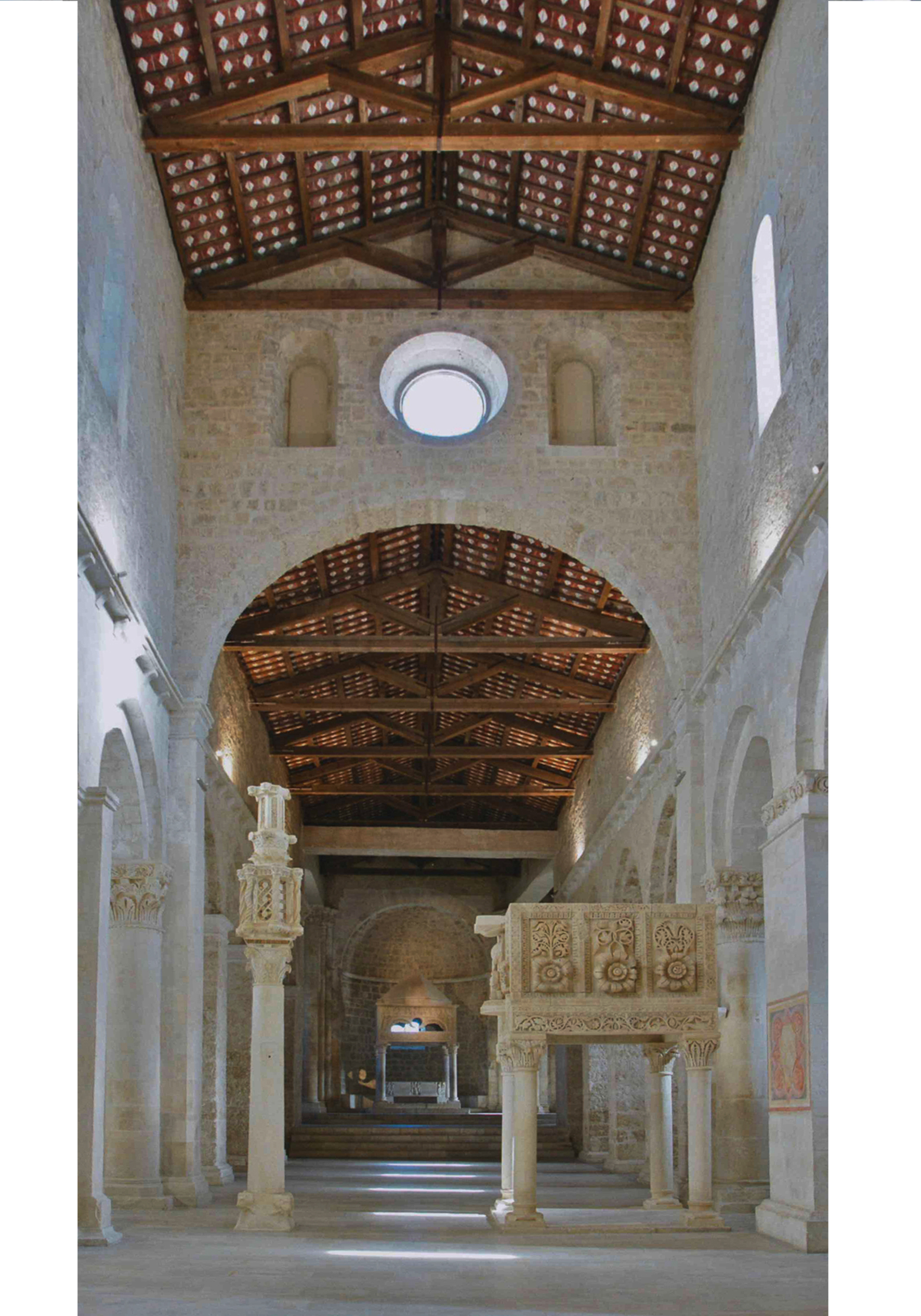Nel complesso gli interventi ristabilivano la condizione di stabilità dei monumenti nel rispetto della loro concezione originaria. Per l’ambone ad esempio, si ristabiliva il sistema molto raffinato di pesi e contrappesi, in cui le lastre del calpestio proseguono sotto i piedritti e la loro stabilità è assicurata dal peso stesso delle lastre di balaustra. I plutei, dal canto loro, sbilanciati verso l’esterno per effetto delle parti aggettanti scolpite ad alto rilievo, erano trattenuti dalle intelaiature composte dai piedritti d’angolo e dalle lastre di corrimano, il tutto, assicurato dalle zanche di collegamento.