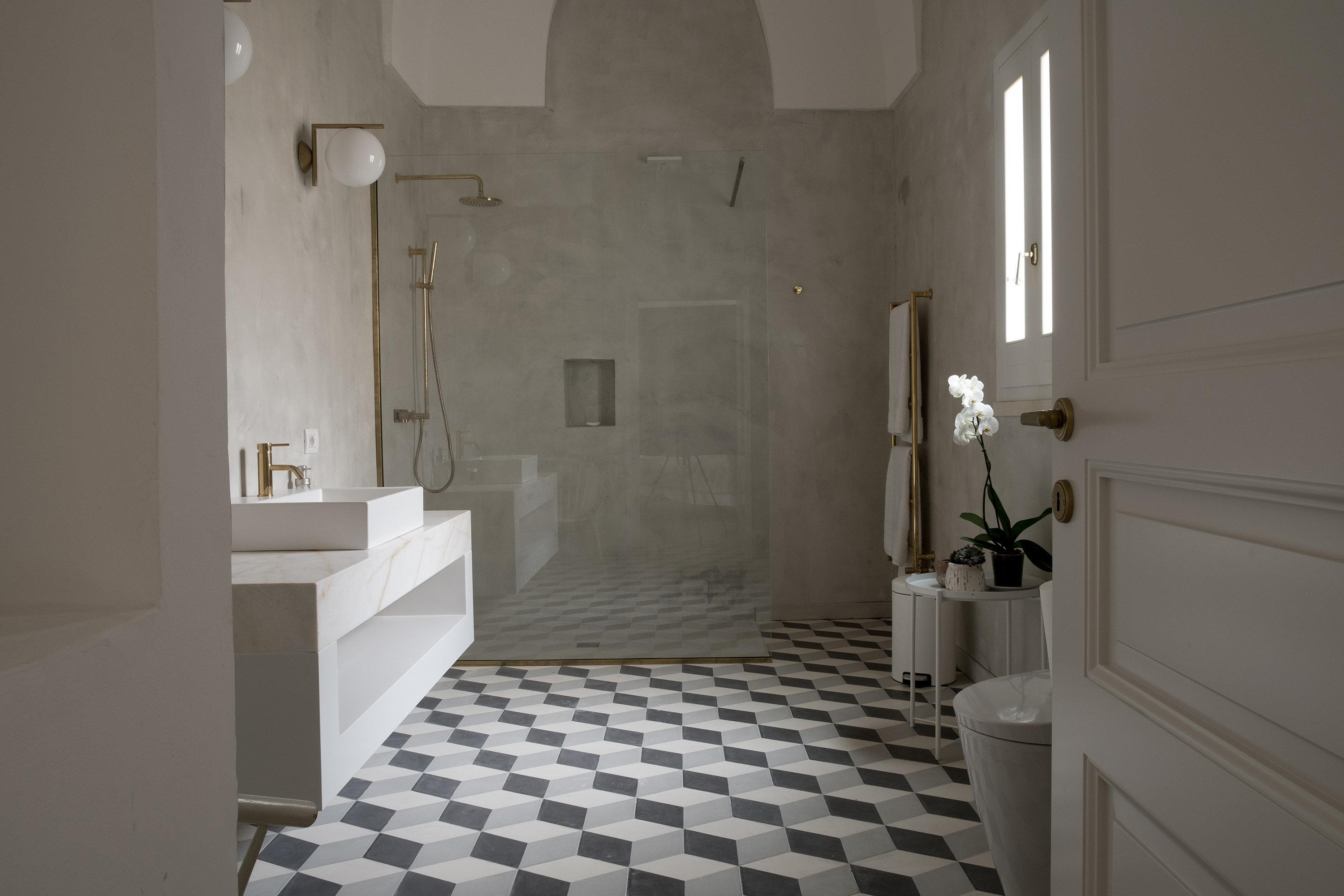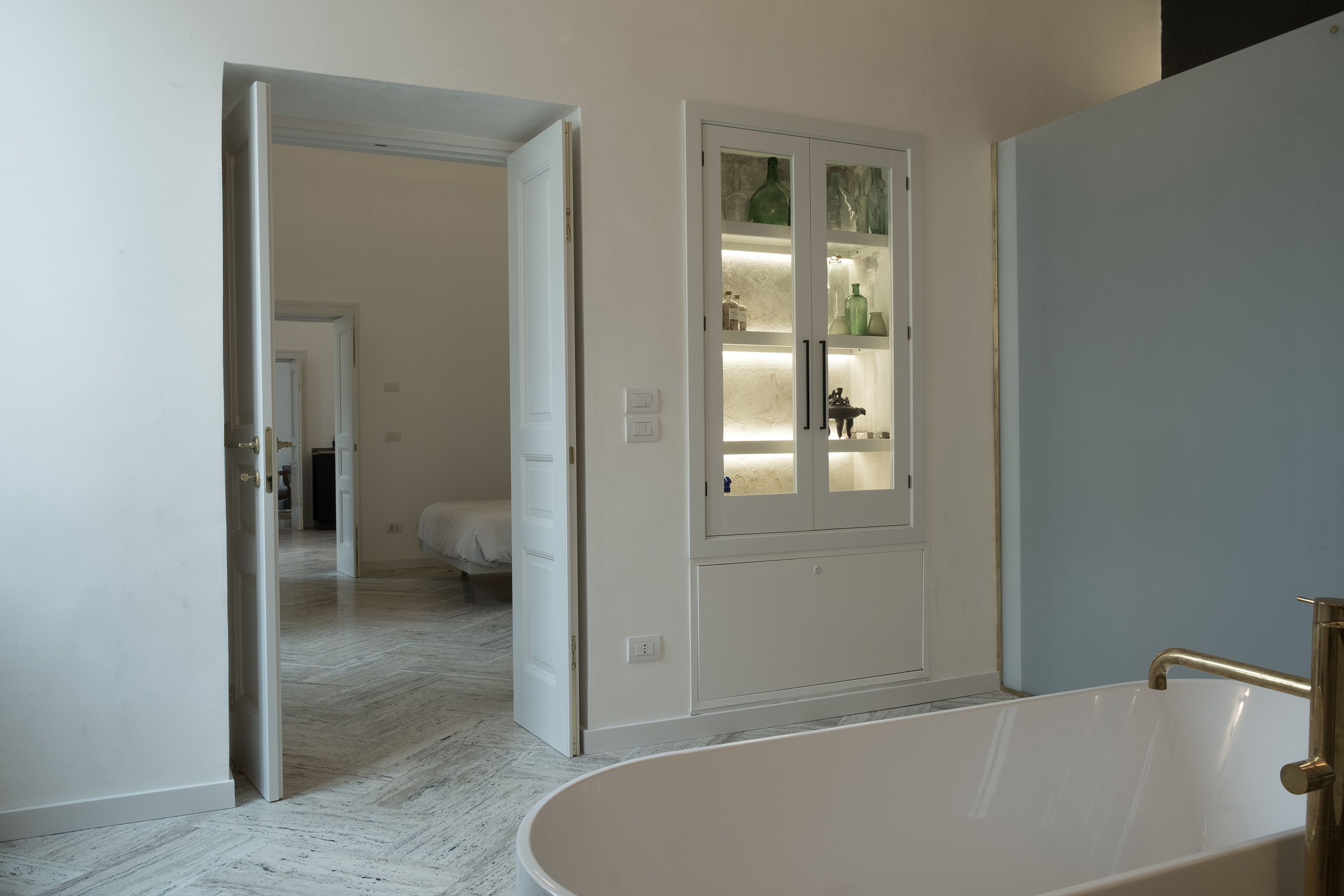 Dunque un progetto complesso, che ha integrato impiantistica e tecnologie avanzate come il sistema di riscaldamento a pavimento e gli impianti domotici, in una struttura di grande valore storico, con la volontà progettuale di creare forti contrasti, facili da leggere ad esempio tra le finiture degli intonaci, crudi e originali, e l’attenzione al design dell’arredamento, mischiando dunque l’eredità del passato al gusto e al vivere contemporaneo.