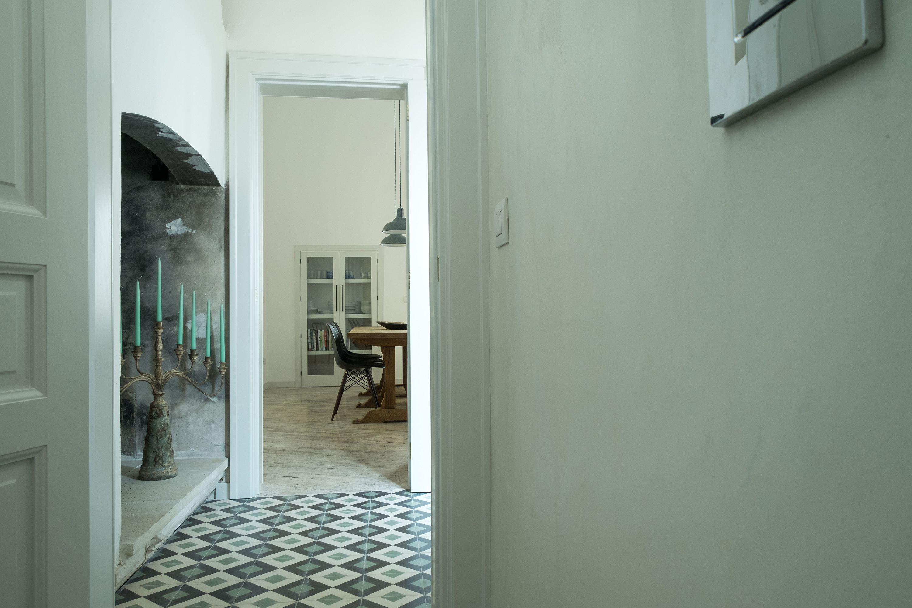 Un antico palazzo dismesso, una committenza straniera affascinata dalla sua storia e decisa a dargli nuova vita: così è iniziato il progetto di recupero della proprietà, fortemente legato al territorio e alla vocazione turistica in forte crescita. Un intervento complesso, a causa di importanti dissesti strutturali su coperture voltate e murature, oltre al degrado avanzato di finiture, infissi, pavimentazioni; il tempo e l’incuria però, non hanno cancellato le suggestioni legate al luogo, il cui percorso centenario parte da lontano, rievocando storie di vita vissuta e di lavoro.