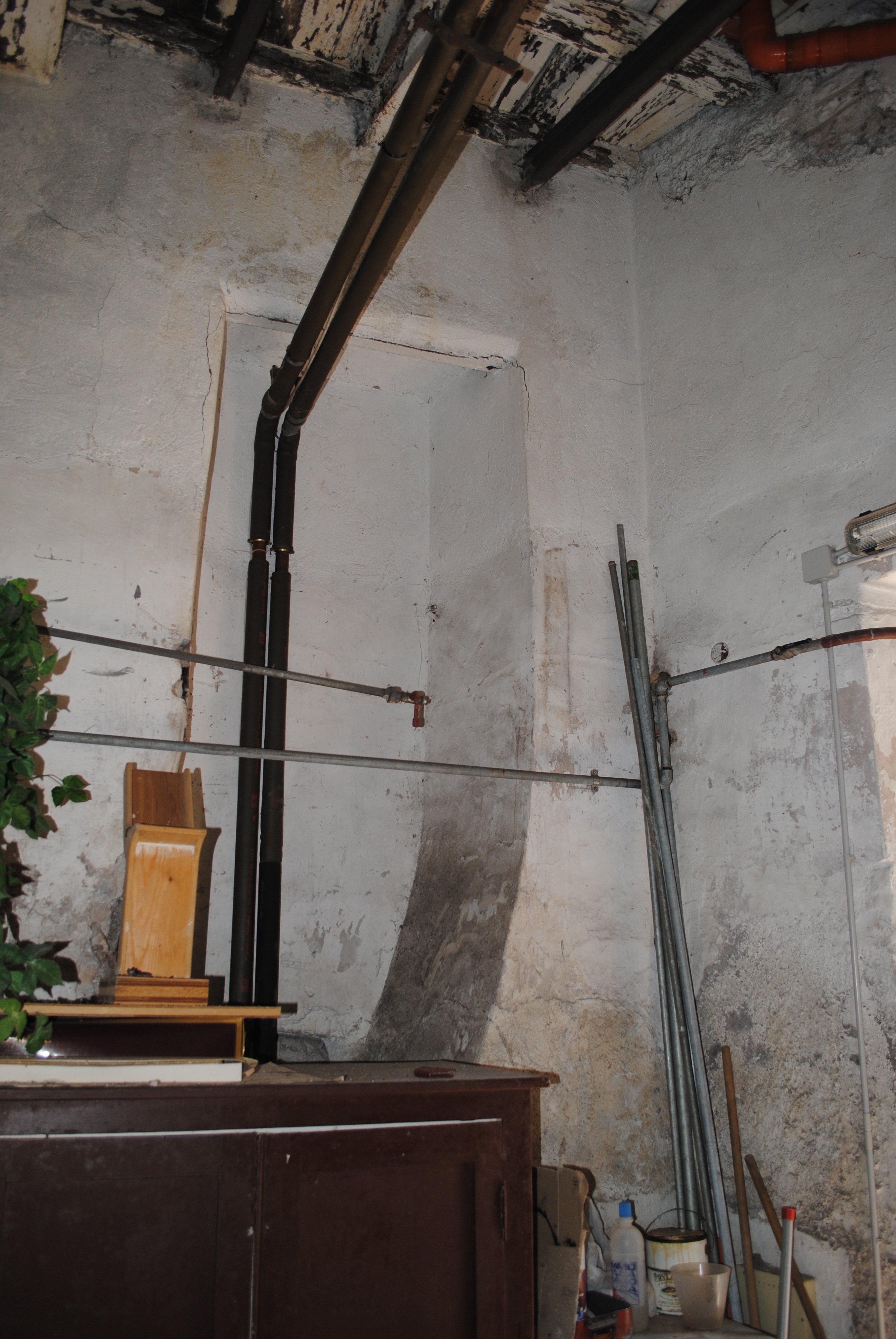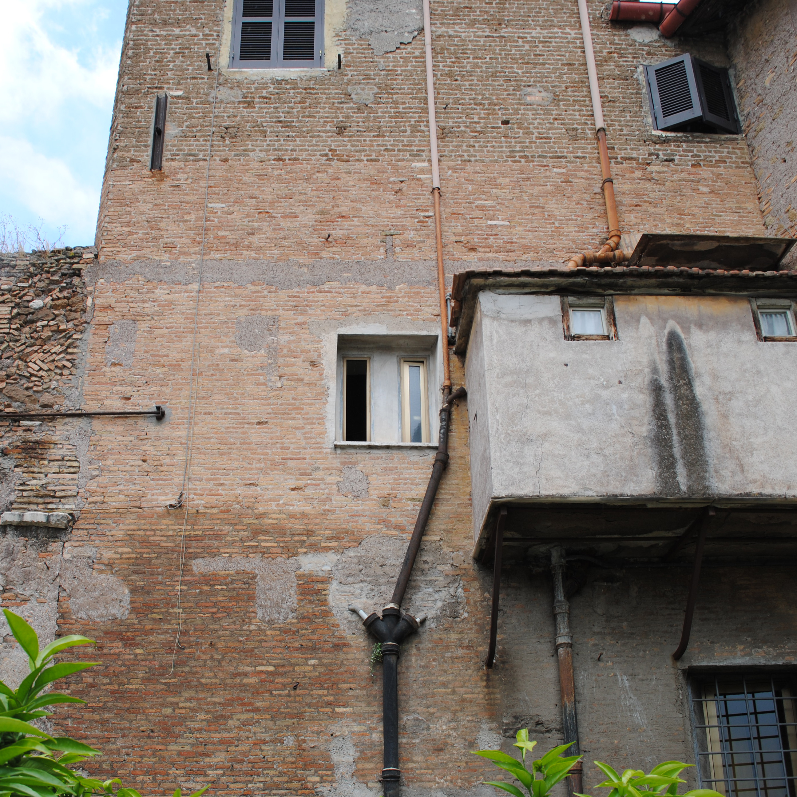 È stato anche demolito il bagno a ballatoio esterno realizzato in età contemporanea con i relativi impianti e ripresa la muratura con una cortina in laterizi. La porta d’accesso a tale struttura è stata quindi trasformata in finestra. Contestualmente sono state razionalizzate le tubazioni provenienti da scarichi di gronde e altri servizi, che qui convergono, con un nuovo allaccio alla rete esistente.