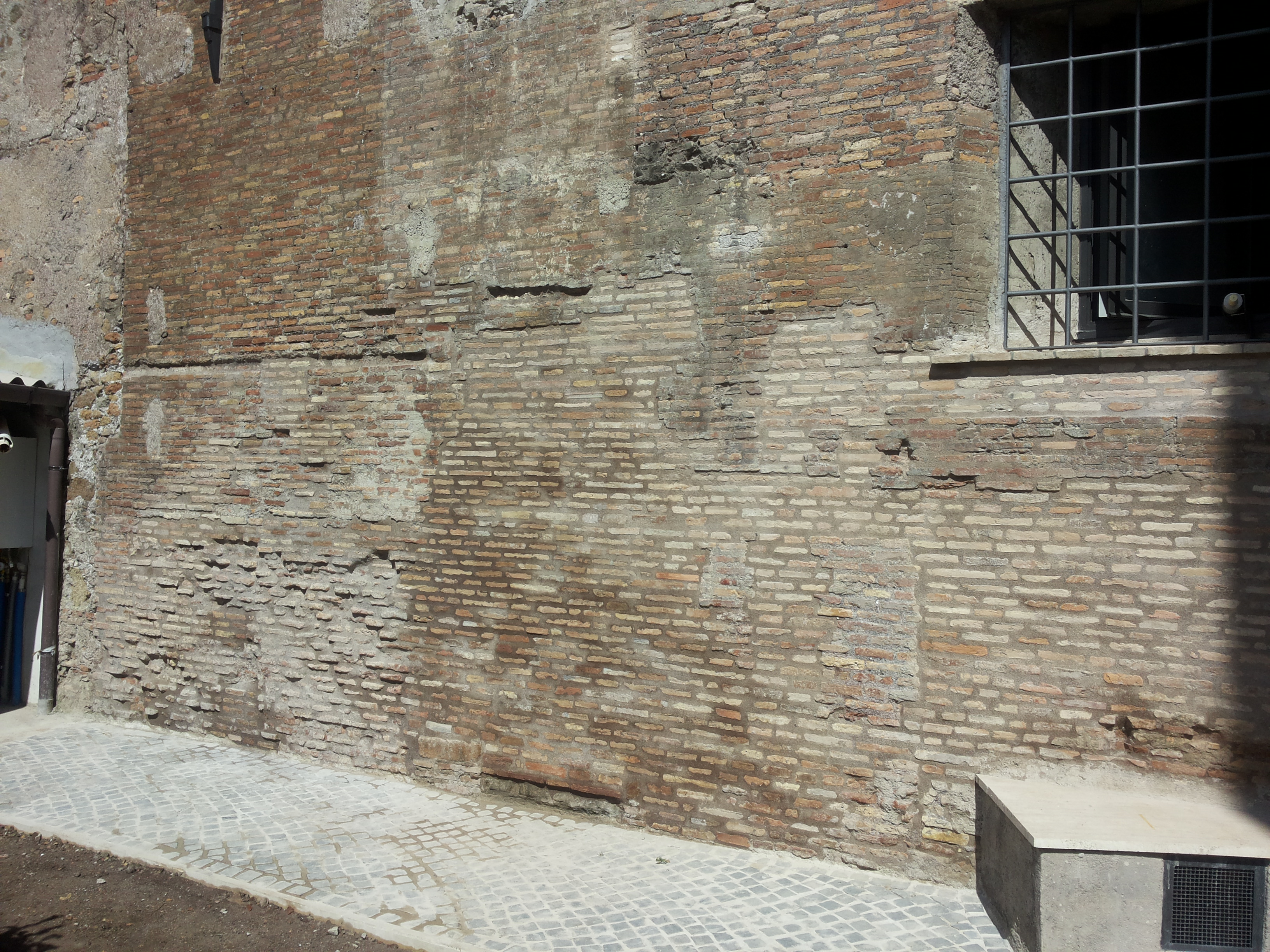La situazione emersa dallo scavo ha reso necessario, in accordo con la Soprintendenza Speciale per i Beni Archeologici di Roma, la sostituzione del vespaio previsto dal progetto con un vano ricavato all’interno dell’originario piano seminterrato, al fine di assicurare l’ispezione delle strutture rinvenute e di garantire un miglior risanamento dall’umidità, grazie a una maggiore aerazione. Tale vano per ragioni statiche non raggiunge il suo livello antico, ma è stata riaperta la feritoia che originariamente vi dava luce, situata sul lato sud- est.