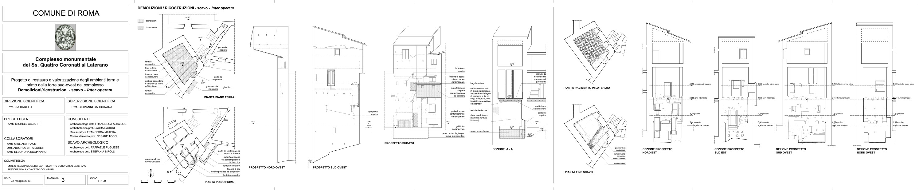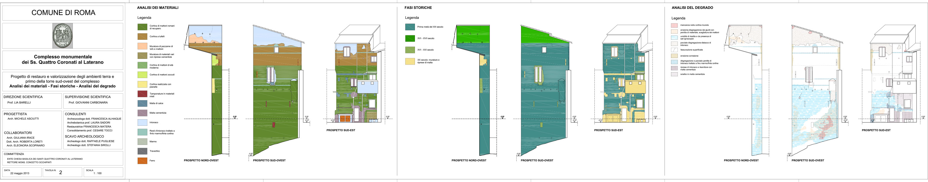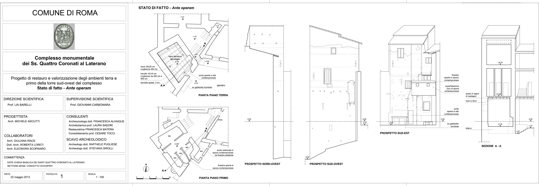 L’intervento riguarda la torre duecentesca posta nell’angolo sud ovest del monastero benedettino, sorto nel medioevo presso la basilica dei SS. Quattro Coronati a Roma, ed è stato attuato in un’ottica multidisciplinare, in particolare a sostegno della conoscenza storica.