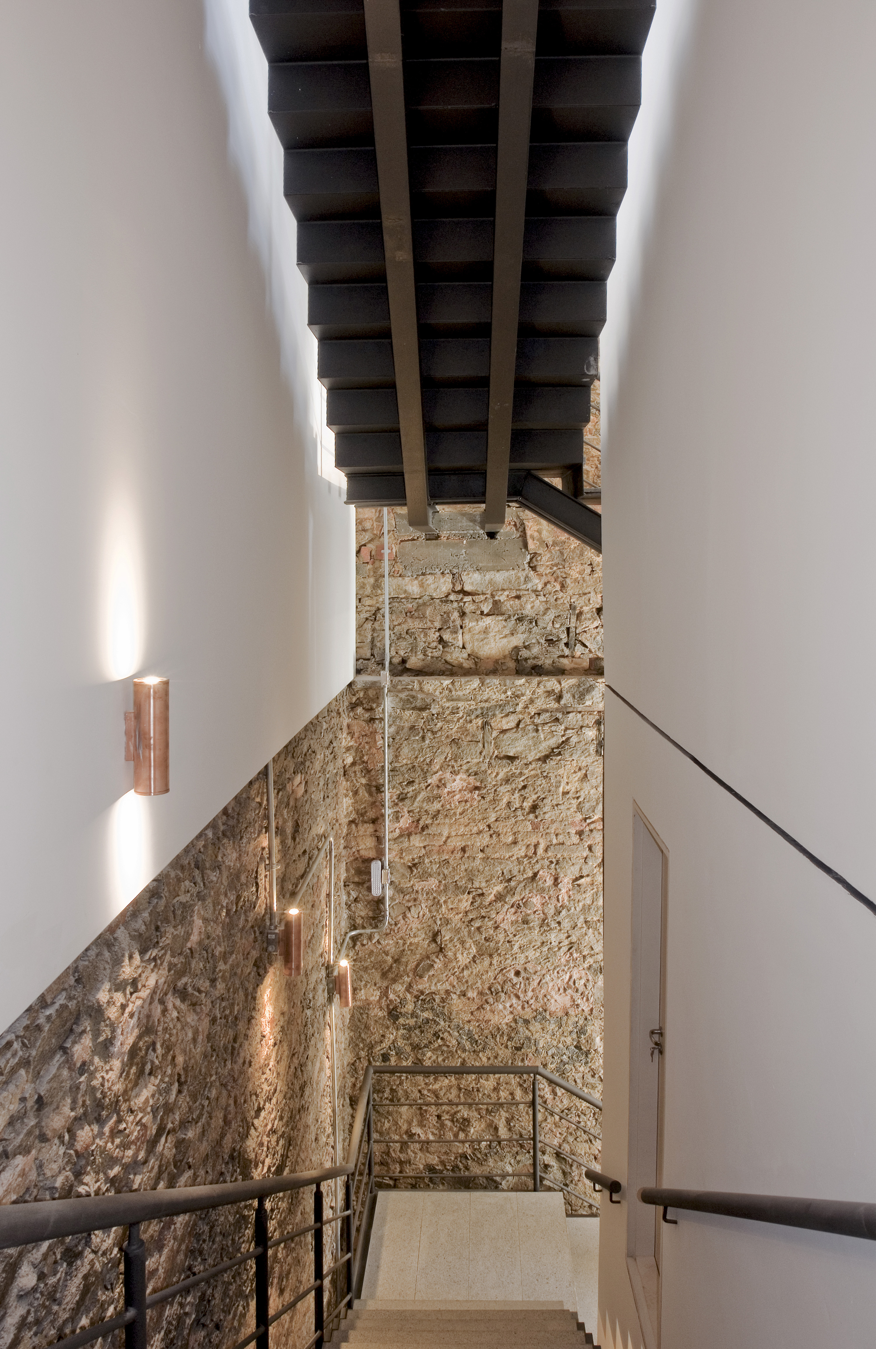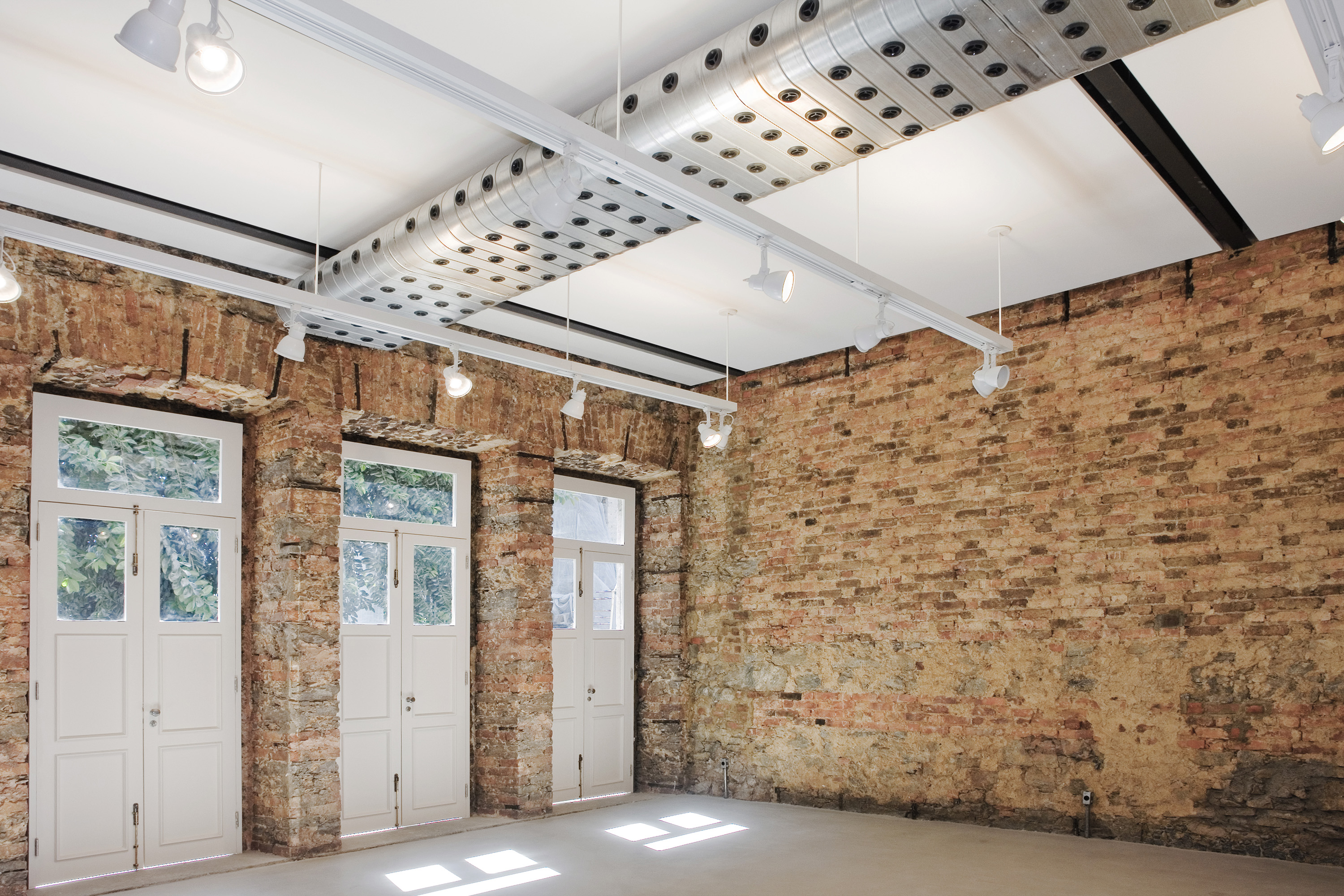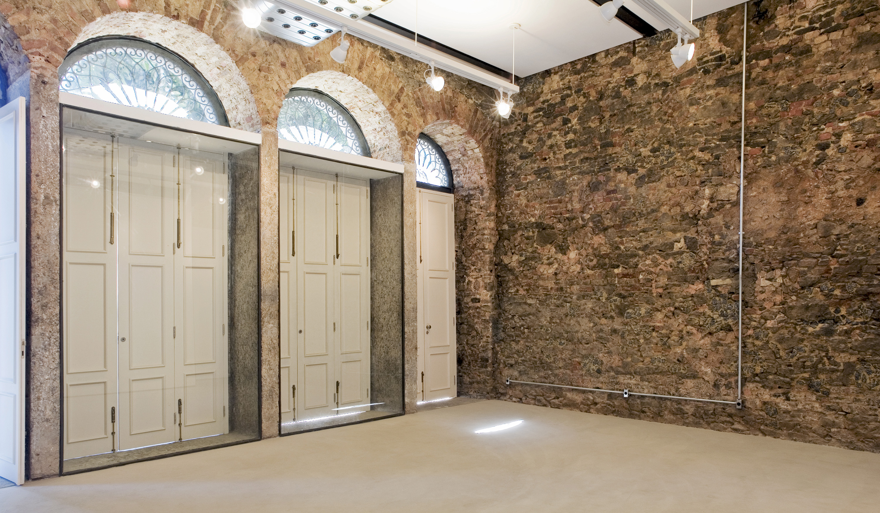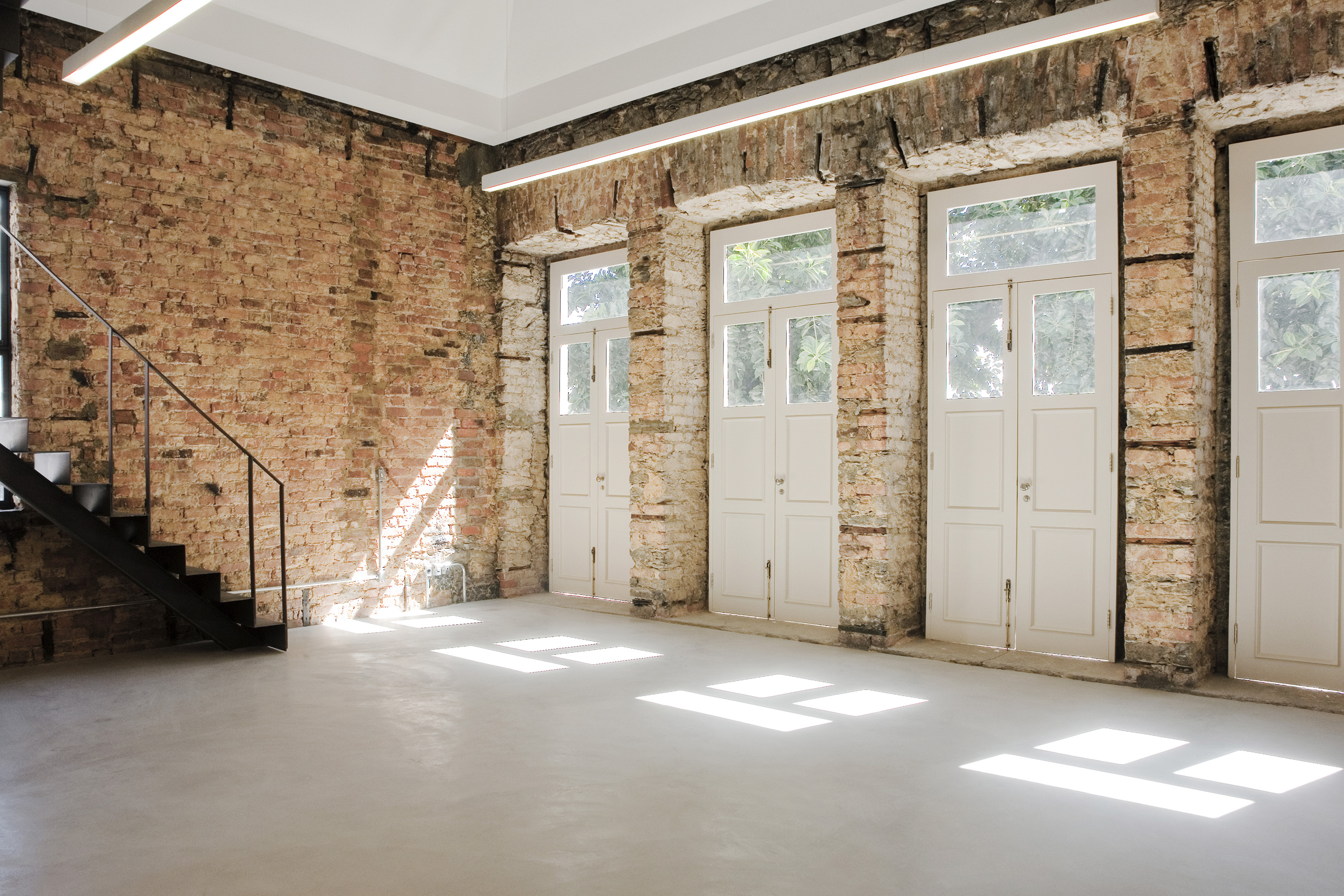 After a fire, the building’s inside was left empty, but the external walls were still standing. As the main facade had suffered almost no damage, it was completely restored to its original status. On the inside, the beauty of the empty space truly stood out, as its mixed masonry was mostly exposed.