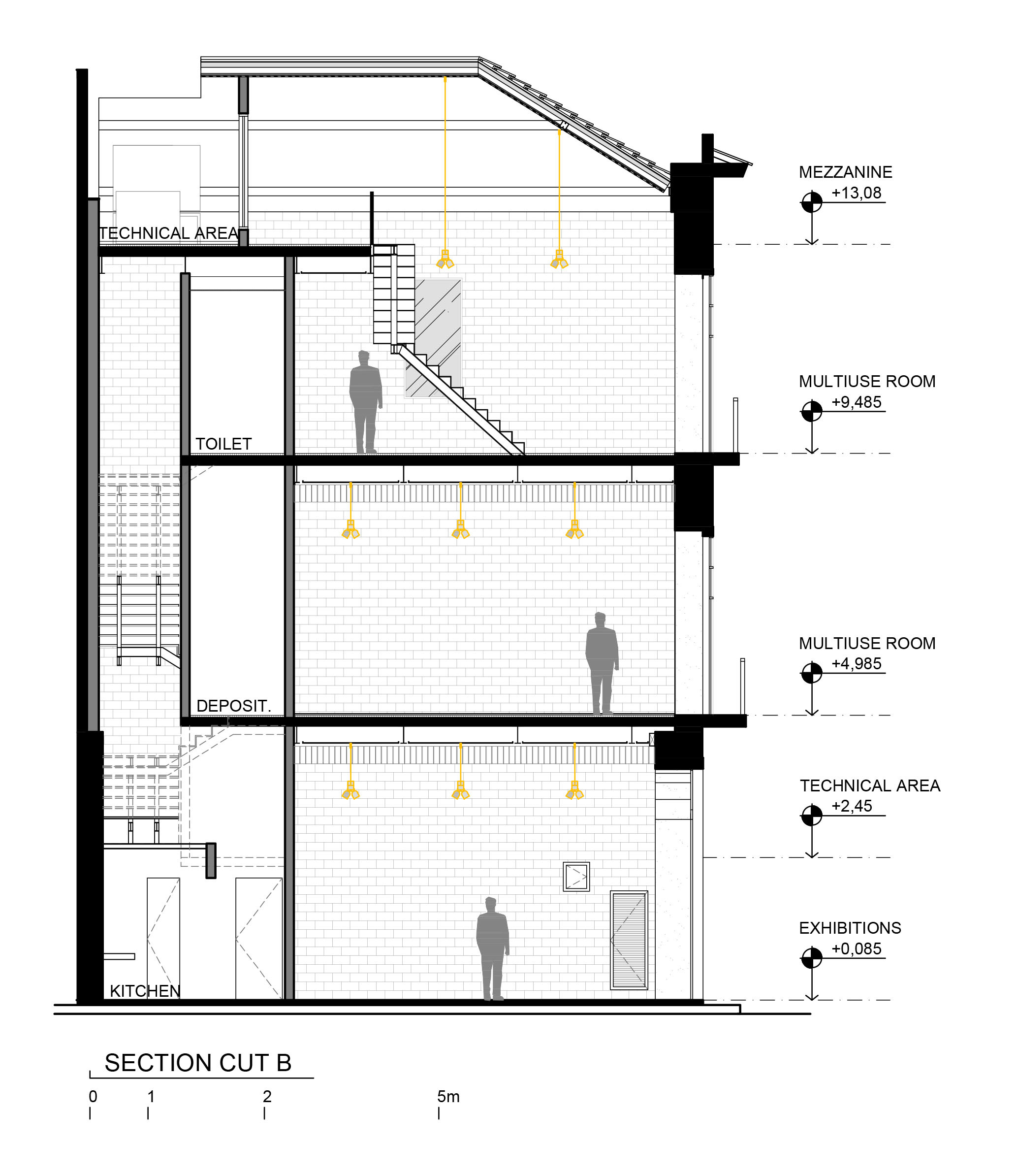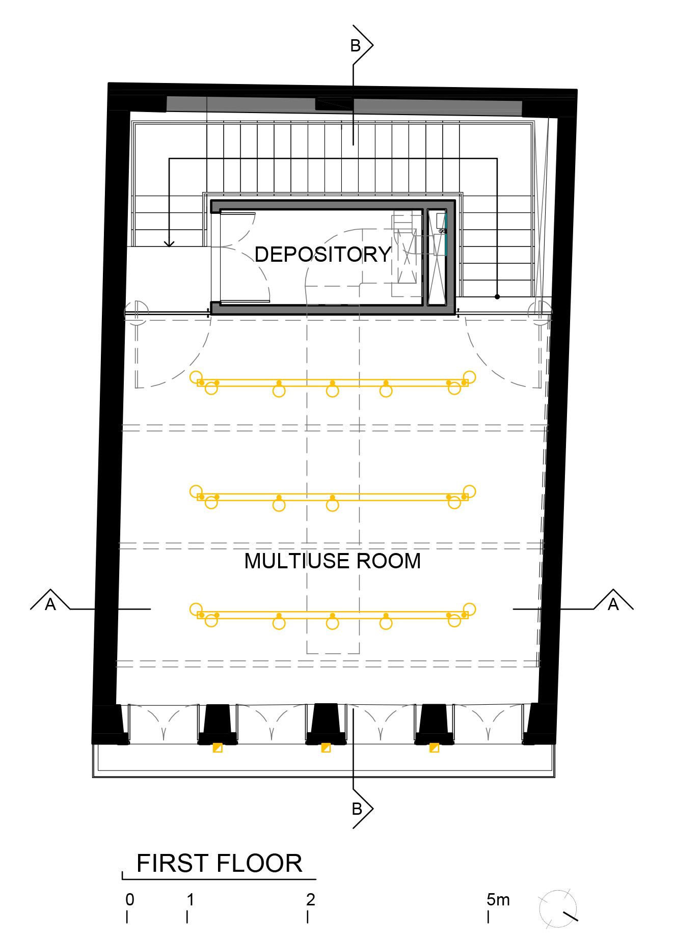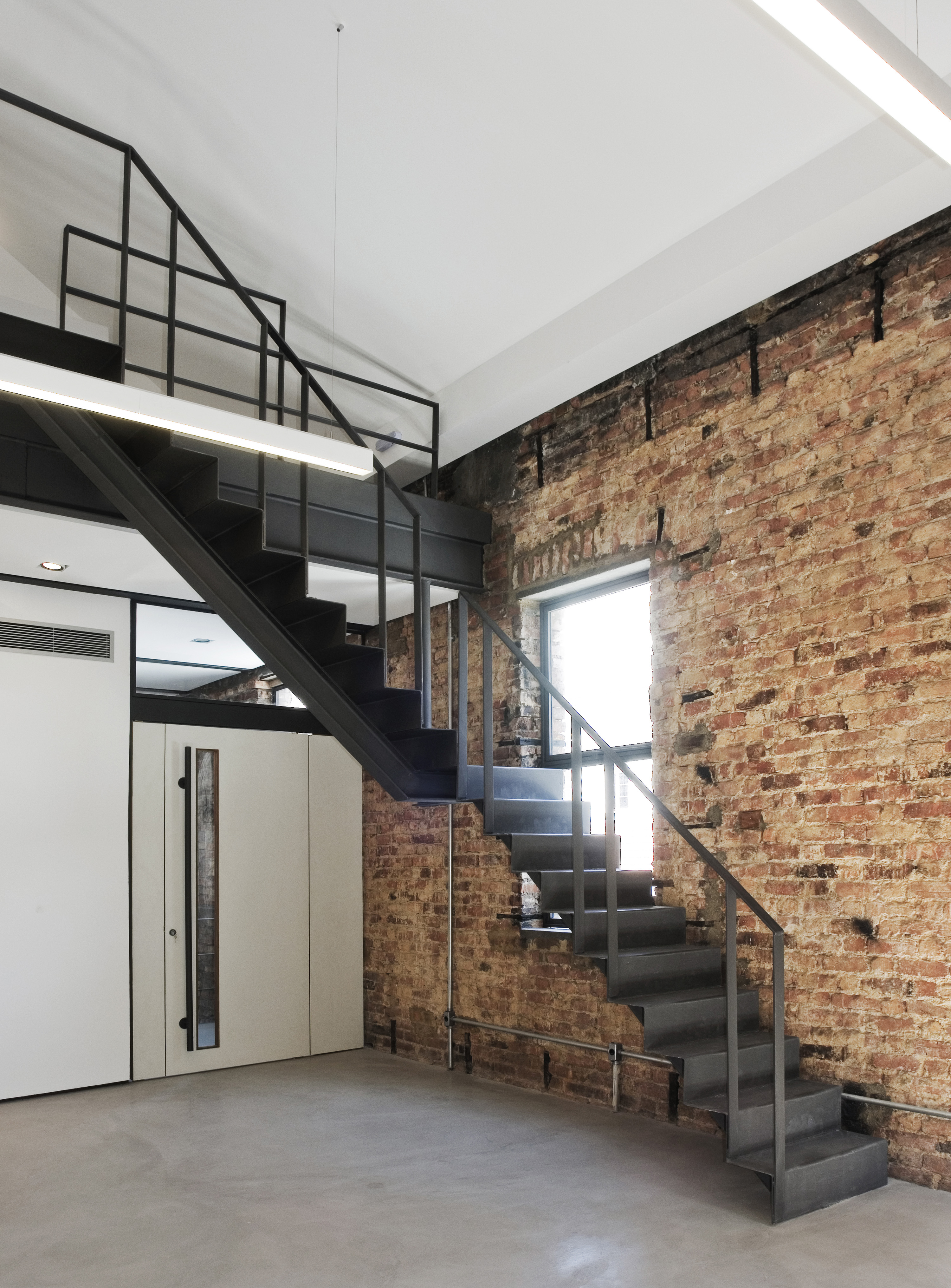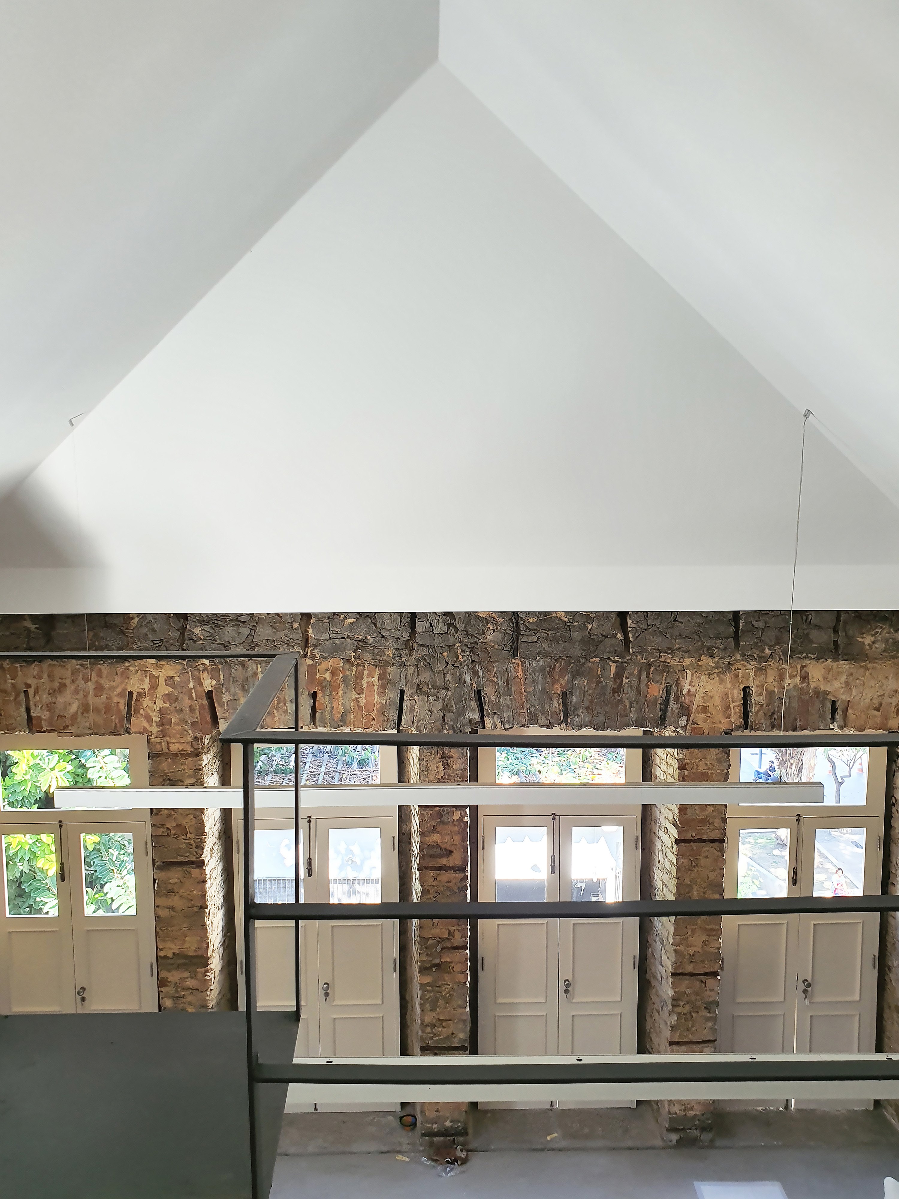 After a fire, the building’s inside was left empty, but the external walls were still standing. As the main facade had suffered almost no damage, it was completely restored to its original status. On the inside, the beauty of the empty space truly stood out, as its mixed masonry was mostly exposed.
