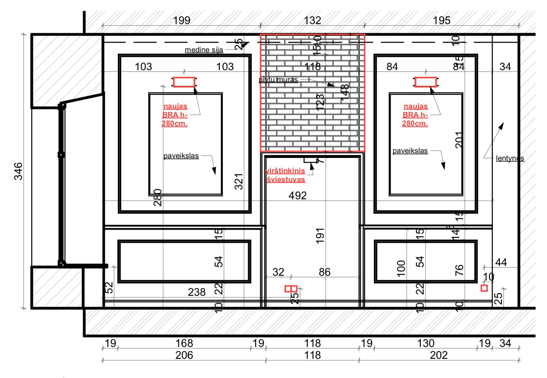 This is the interior of the apartment in the Old Town of Vilnius. The facades of the Old Town’s homes and the cozy walled inner courtyards, with their texture, colors, and aura, found resonance in these homes. Here you can find several hundred old bricks, and wooden balks revealing ancient structures of the building, and genuine old pine boards, which do not know how many bare feet have been walking, all of which has been preserved, restored and left to the next generations. Where color is desired, they are taken from the shadows of the facade of the house. The material is only natural, real and vibrant – helping to create a harmonious, rich, yet partly uncluttered interior, reflecting the most beautiful shades of the Old Town of Vilnius.