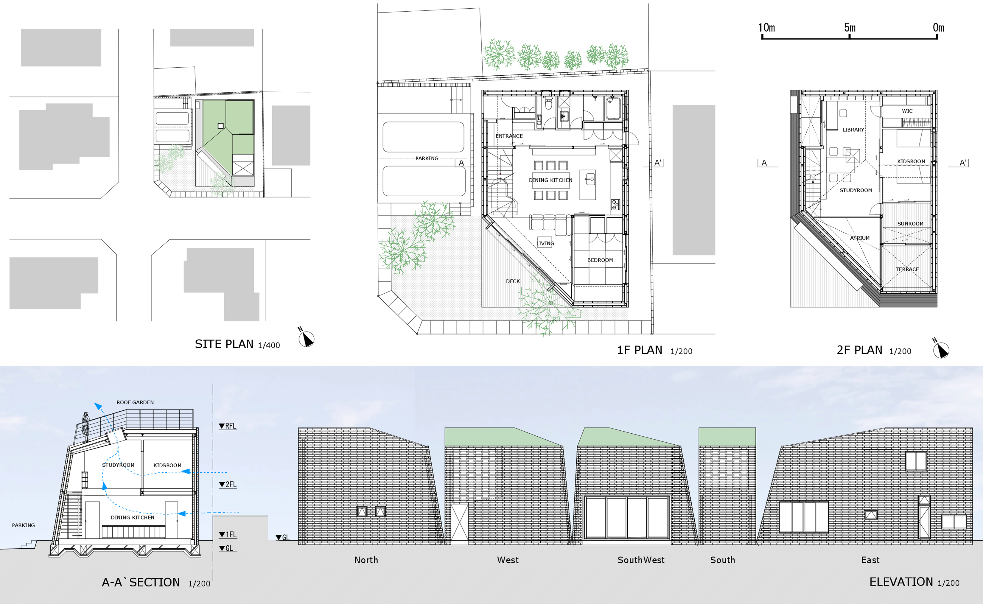 The residents wished to realize a new ecological life having a stronger connection with the surrounding environment without relying on artificial energy, even in the hot and humid climate of southern Kyushu. They hoped to feel the wind, use rain water, and touch the soil everyday; a thoroughly local and natural way of living. Their house was to be built in a residential area near the center of Kagoshima city, located on the unique Shirasu plateau. I intuitively came up with the idea to use the indigenous Shirasu soil as the main material so that the house matches the local environment.