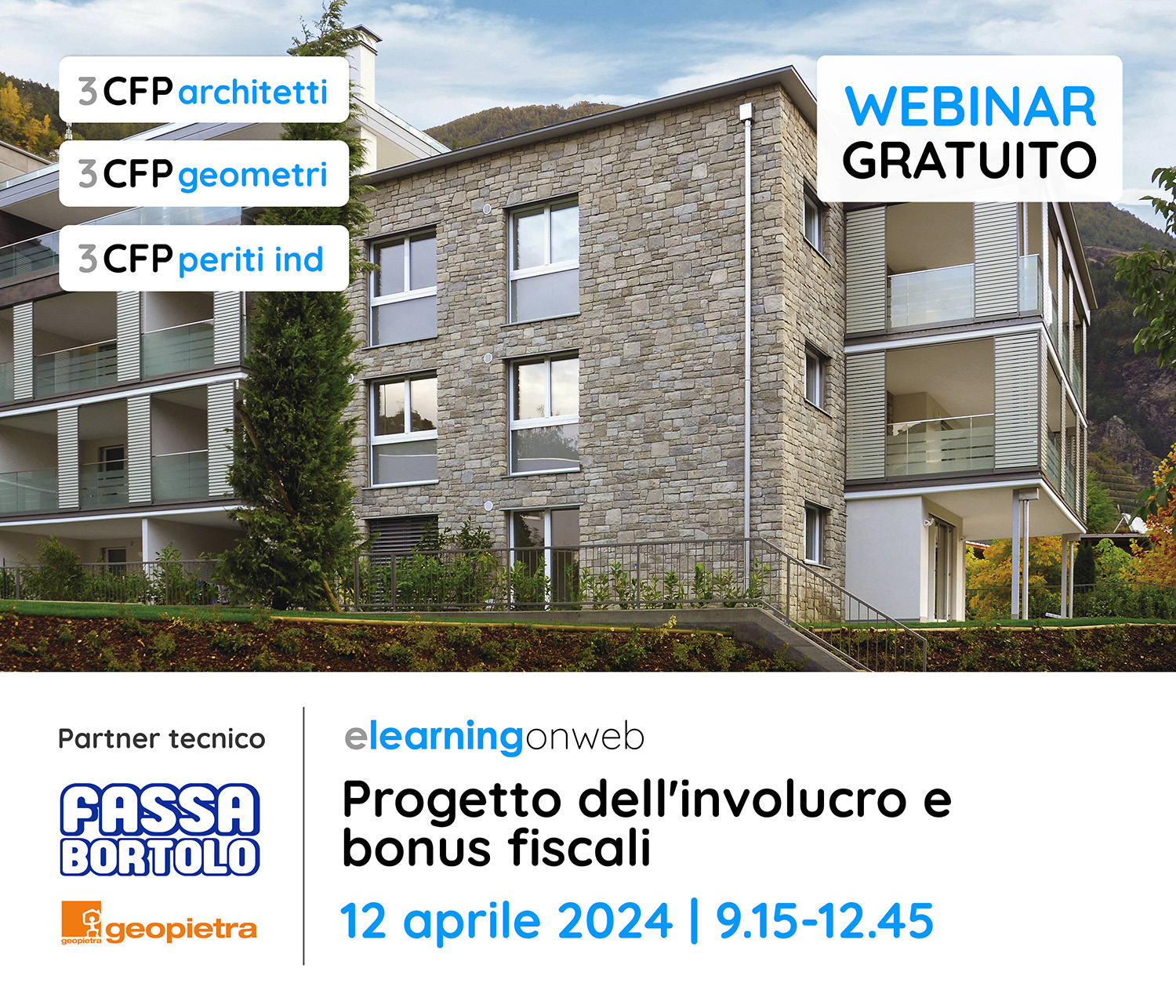 Il webinar tratterà il tema "Progetto dell'involucro e bonus fiscali" sono previsti 3 CFP per architetti, geometri e periti industriali.
