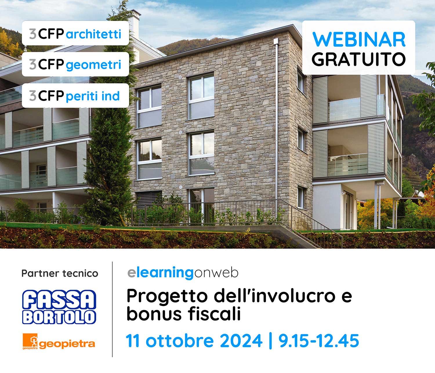 Il webinar tratterà il tema "Progetto dell'involucro e bonus fiscali" sono previsti  3 CFP per architetti, geometri e periti industriali.