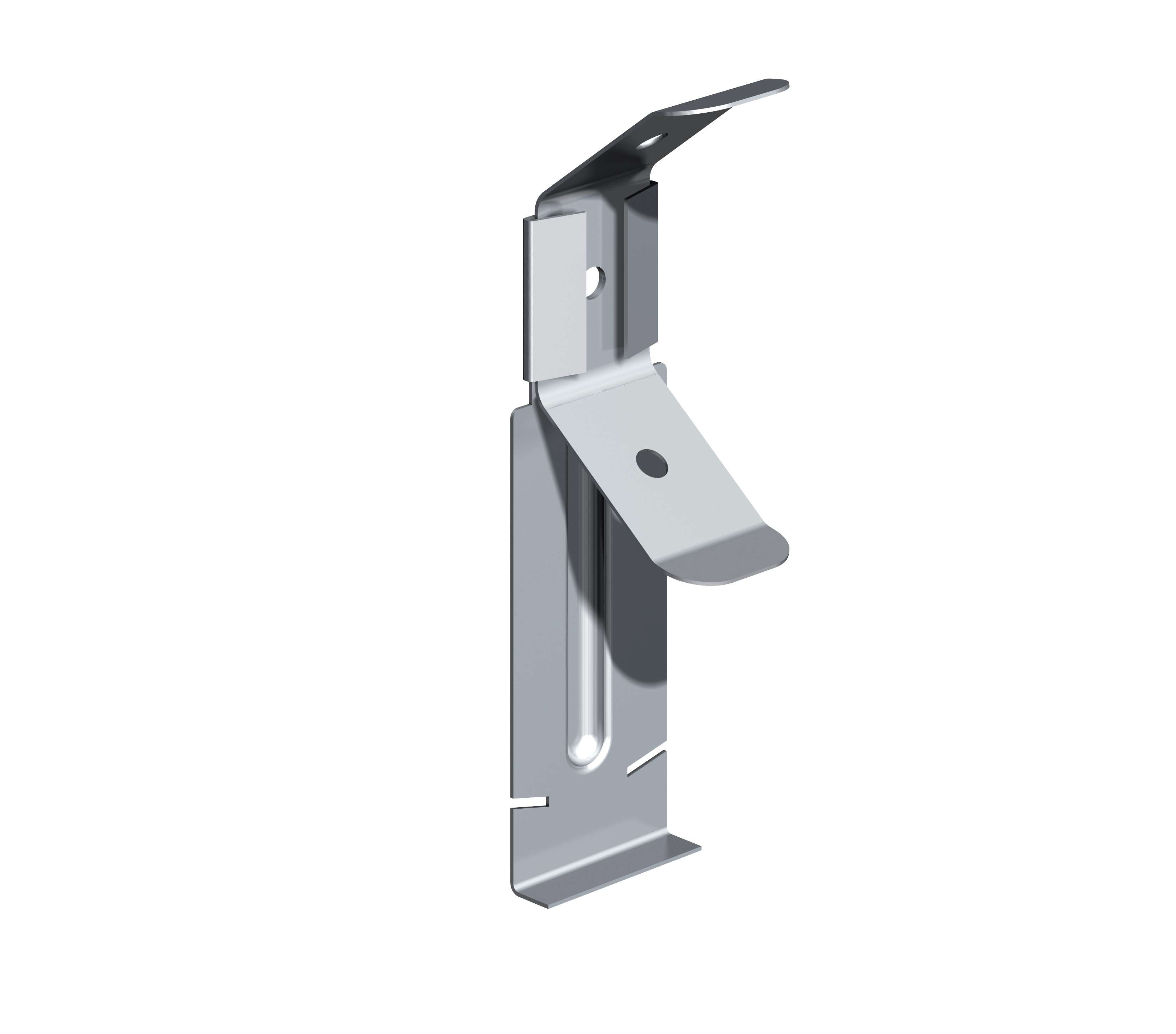 Prodotto realizzato in acciaio zincato utilizzato nelle controsoffittature per agganciare il profilo primario da controsoffitto (profilo a scatto) U 40/28/40.