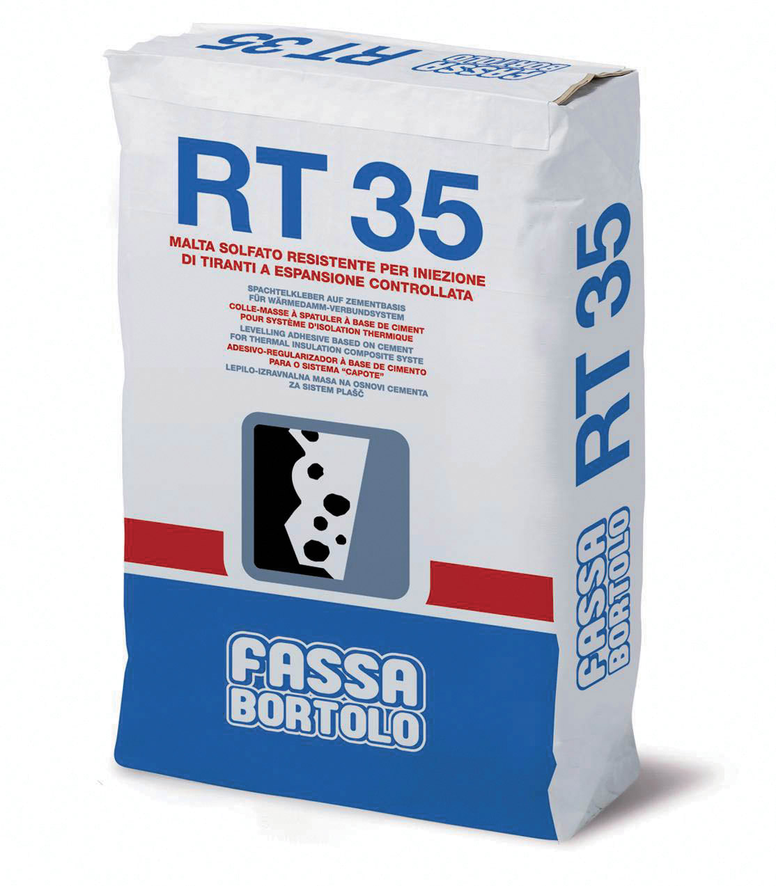RT35 è usata come malta da iniezione per l'ancoraggio di tiranti, per il riempimento di cavità e per l'uso in pressione nella realizzazione di micropali valvolati e con sistemi valvolati in genere.