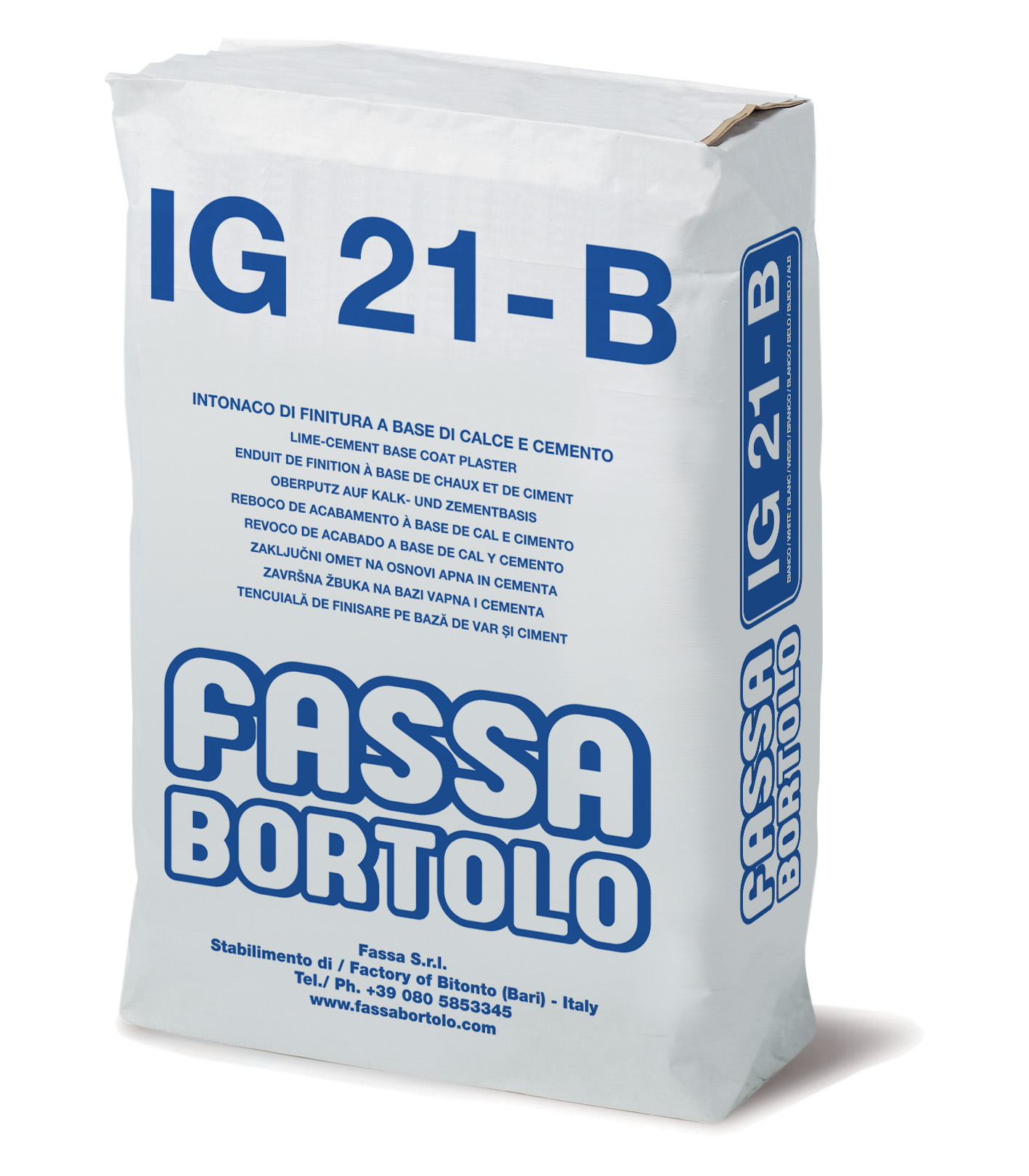 IG 21-B viene usato come finitura a civile su intonaci di fondo a base di calce e cemento (ad esempio KC 1, KS 9, KI 7, ecc.).
