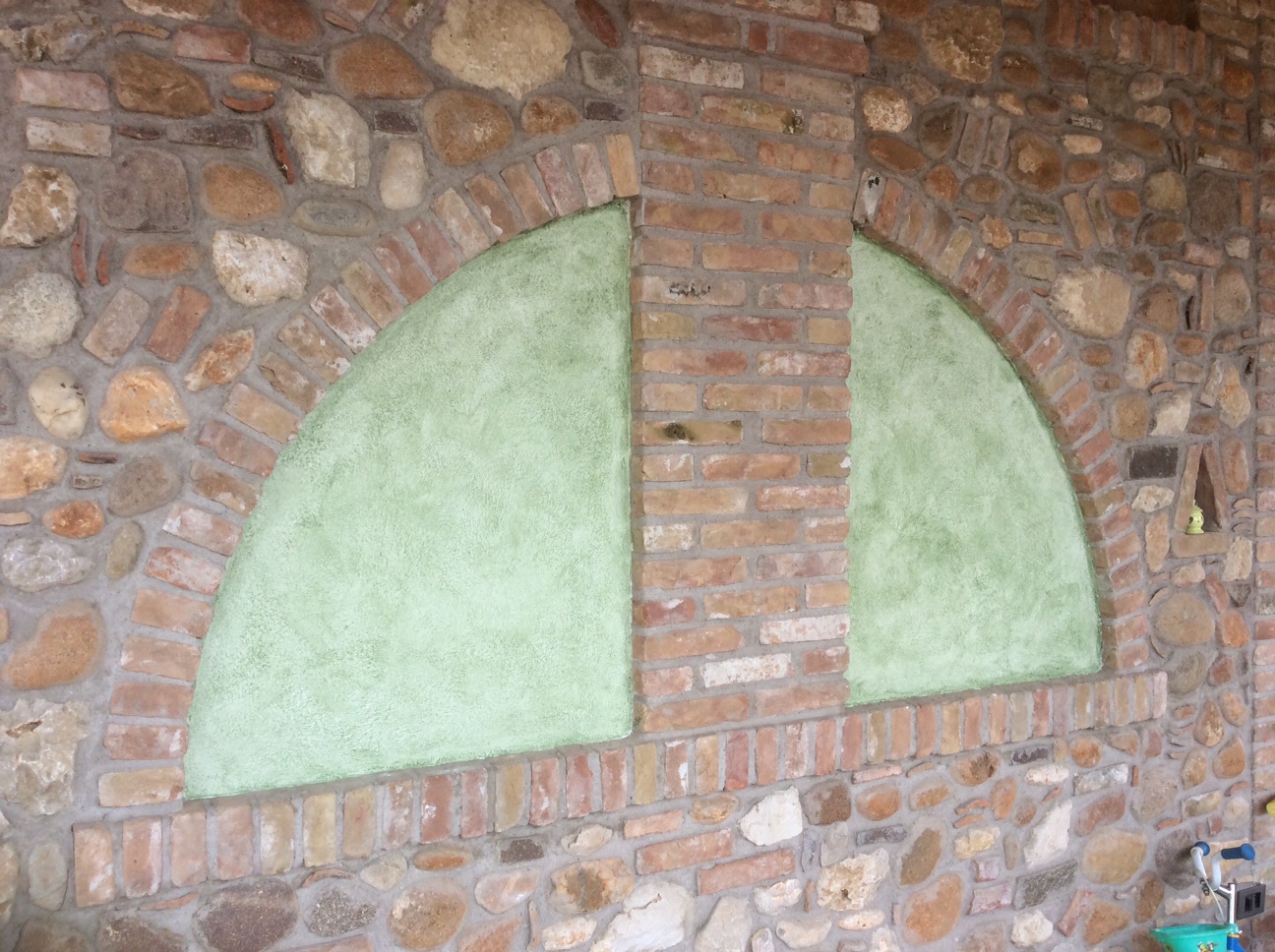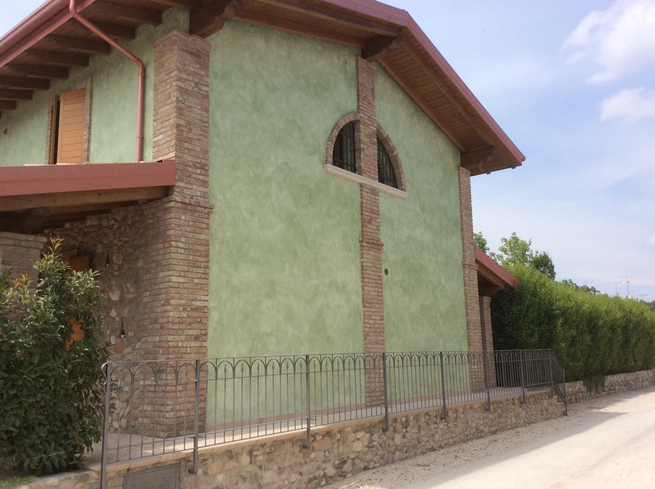 Dopo un primo strato di fissativo sul supporto originale, si è proceduto con l’applicazione della finitura silossanica protettiva SKIN 432. Si tratta di una speciale pittura decorativa ad elevate prestazioni con ottima idrorepellenza e buona traspirabilità. La presenza di molecole che rendono il film di pittura maggiormente resistente alle muffe ed alle alghe.