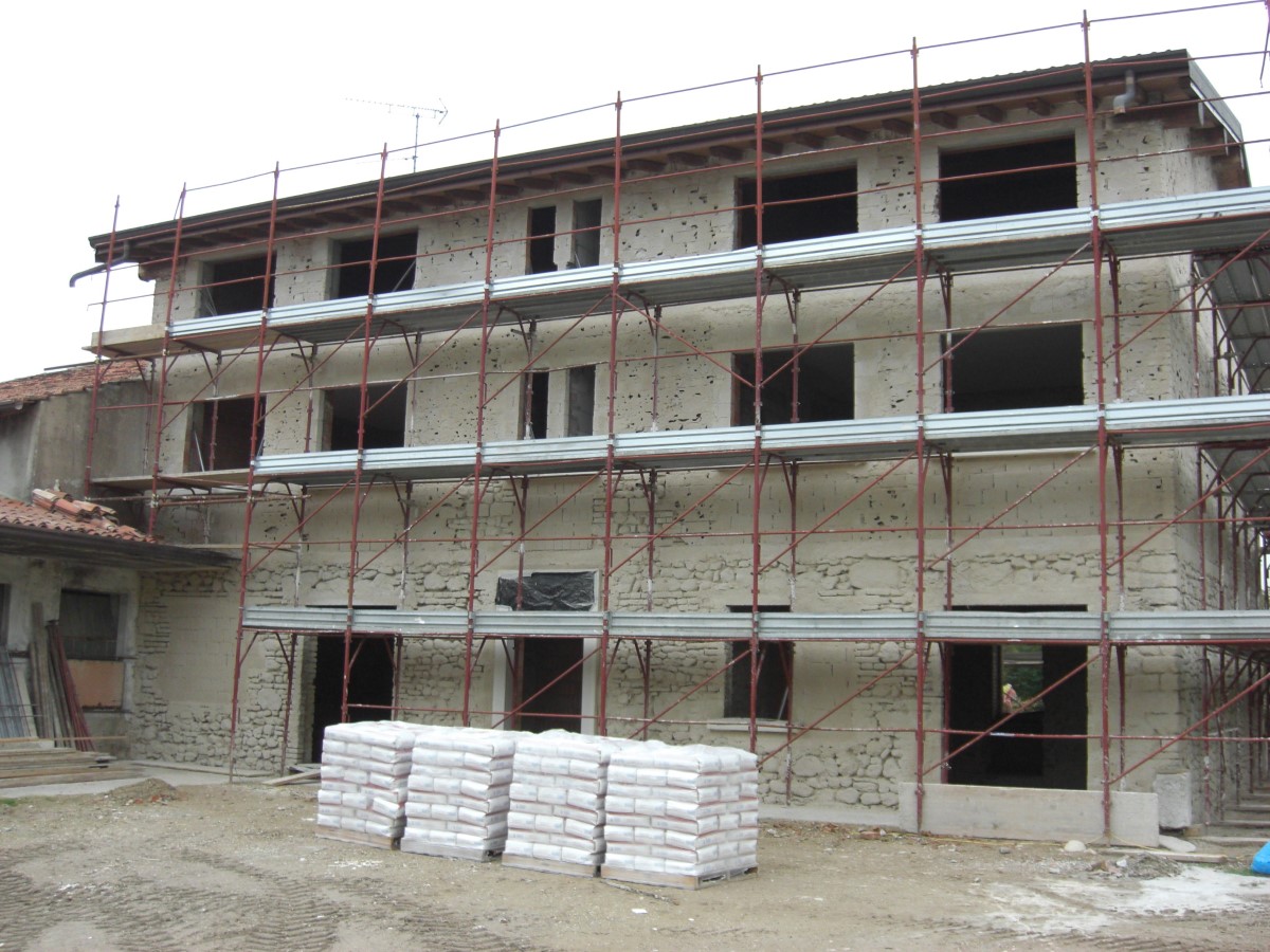 In modo particolare sugli intonaci interni ed esterni, si è previsto l’utilizzo di prodotti a base di calce idraulica naturale, che risulta più adatta nel rifacimento degli intonaci sulle vecchie murature costituite da sasso e mattoni. Una volta asportati tutti gli intonaci esistenti e pulite le superfici sottostanti con idrolavaggio, si è proceduto con l’applicazione di RINZAFFO 720.