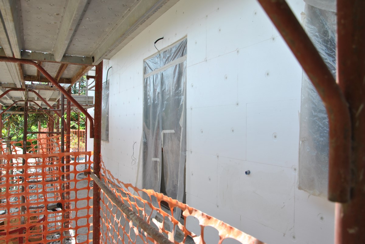 La realizzazione dell'isolamento termico a cappotto è stata fatta utilizzando le LASTRE IN EPS 120 con spessore 8 cm, per l’incollaggio e successiva rasatura è stato utilizzato il collante A 96 di colore bianco. La rasatura è stata realizzata annegando la rete FASSANET 160 tra la prima e seconda mano di rasante. A maturazione avvenuta, sono state primerizzate le superfici con il fissativo acrilico FA 249, successivamente è stato applicato il rivestimento acrilico RTA 549 con granulometria 1,5 mm. Le superfici esterne dove non sono state posizionate le lastre isolanti, come ad esempio la superficie sottostante dei balconi e i cornicioni, sono state tinteggiate con il microrivestimento MR 287 e con la pittura altamente traspirante PS 403.