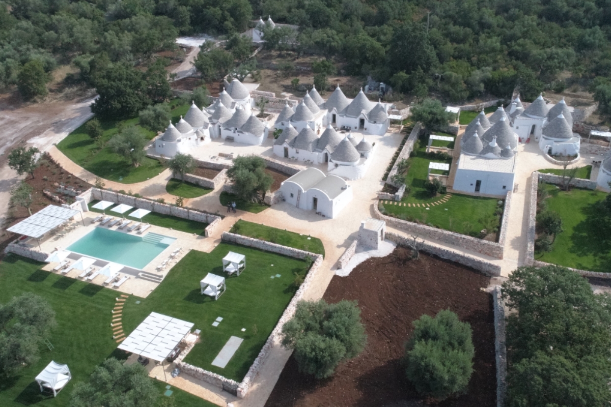 I materiali scelti ricalcano la storia che ha profondamente caratterizzato il territorio della Valle d’Itria, rendendolo unico al mondo e appartengono alla tradizione architettonica pugliese, quali la pietra, la calce, il ferro ed il legno, trattati seguendo l’identità storica del borgo.