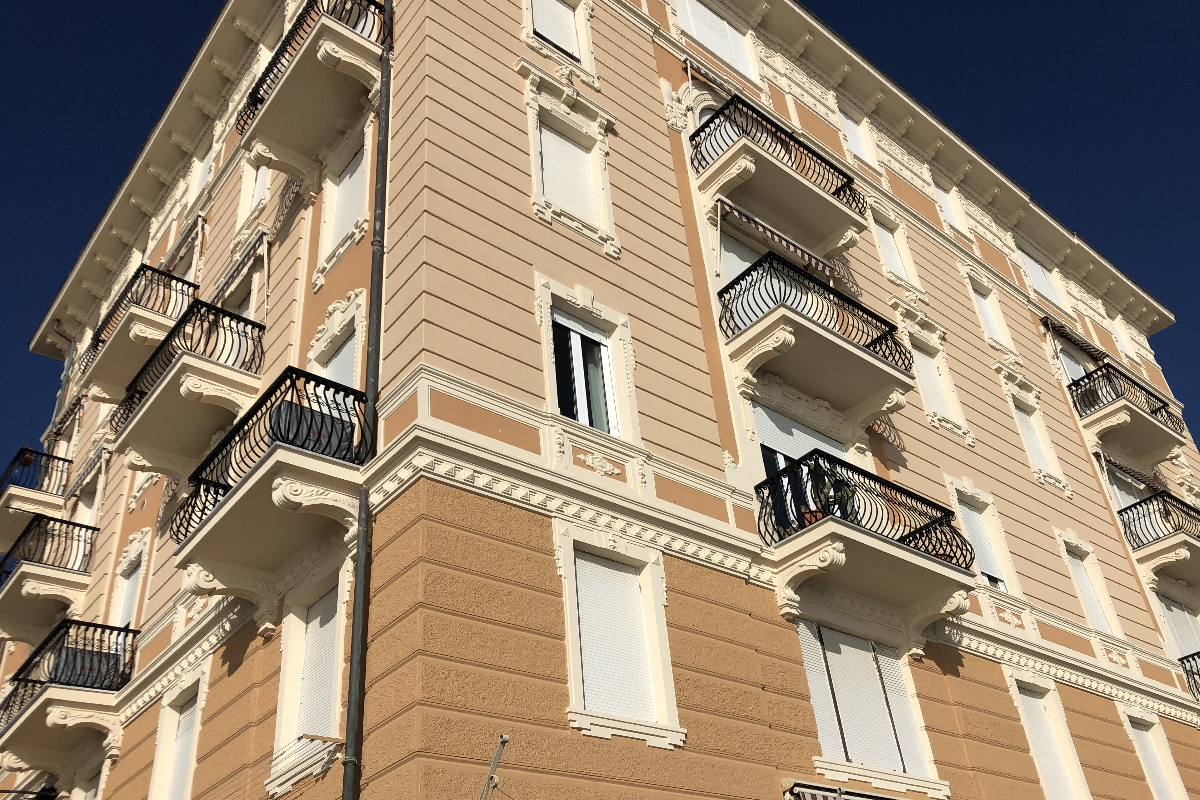 Il condominio oggetto di ristrutturazione si trova a Varazze (SV), situato fronte mare. I lavori hanno riguardato il ripristino delle facciate condominiali. Queste infatti, essendo esposte ai venti del Mar Ligure e alla salsedine, si presentavano in uno stato di degrado generalizzato. La scelta d’intervento è ricaduta su un ciclo di intonacatura a base di calce idraulica naturale NHL 3,5, con prodotti appartenenti alla linea Ex Novo Bio-Restauro Storico, pensata per interventi di restauro e recupero di murature compromesse dall’umidità e particolarmente adatta per edifici di carattere storico, come questo edificio risalente ai primi anni del 1900.