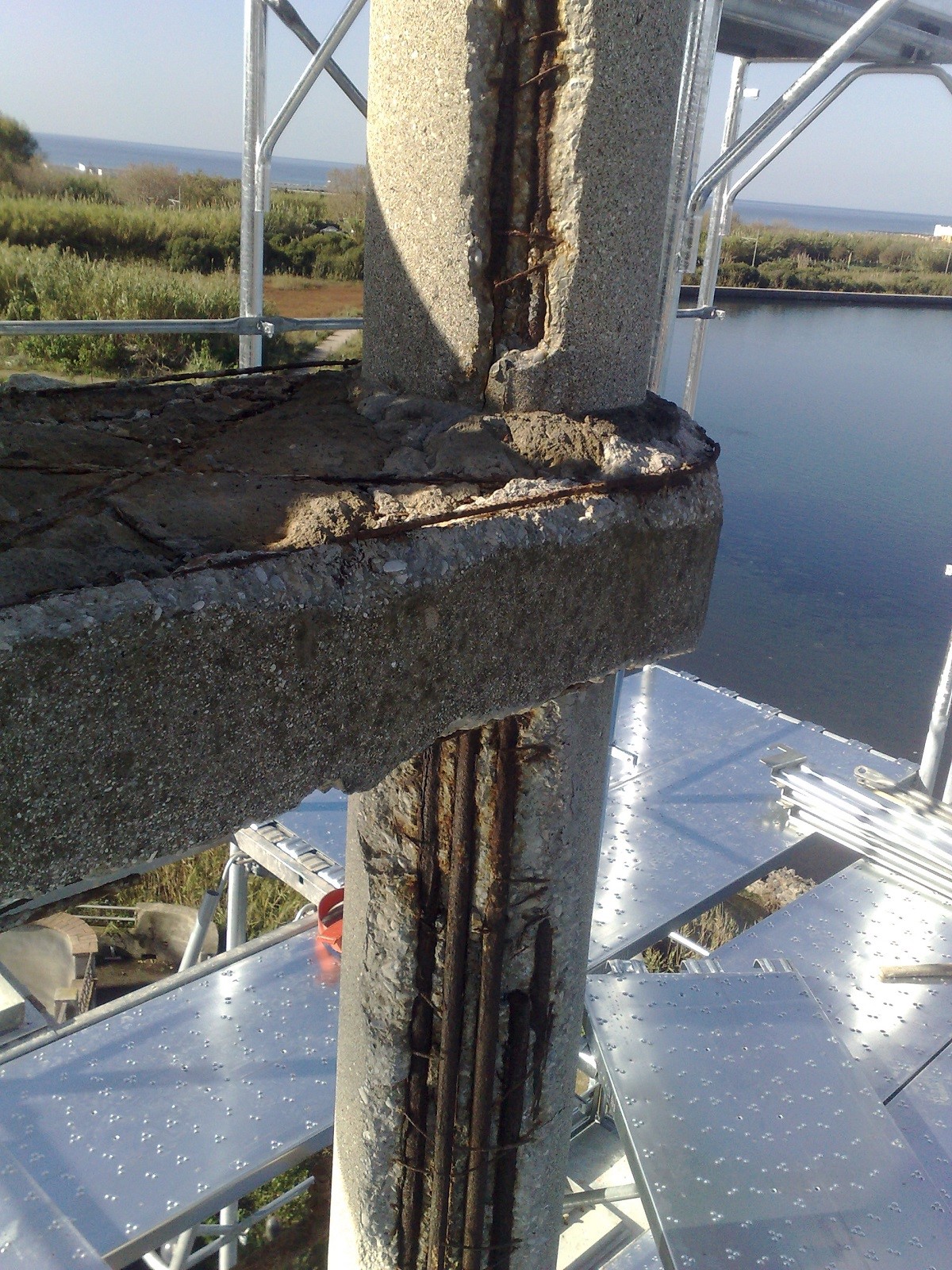La vicinanza dei piloni al mare ha molto probabilmente contribuito, nel tempo, a provocare la disgregazione del calcestruzzo e a comprometterne la durabilità.