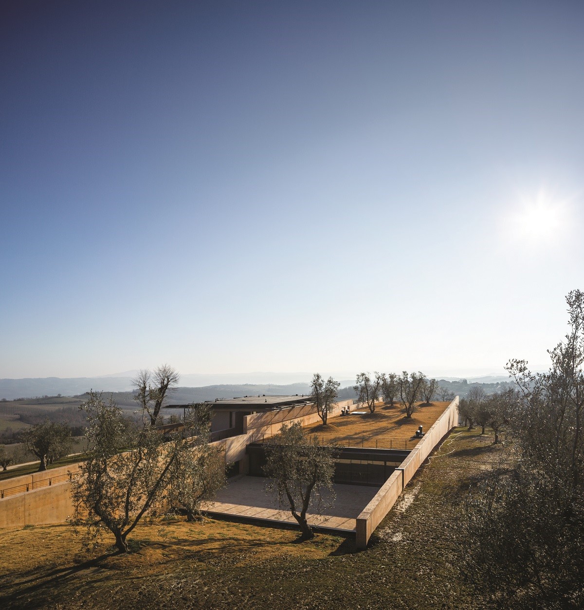 Dalla volontà di coniugare la rigorosa funzionalità dell’attività produttiva con la bellezza del territorio e la sua sostenibilità, nasce un edificio architettonico rappresentativo, progettato per contenere spazi accessibili al pubblico, locali di produzione, uffici, il tutto perfettamente inserito nel paesaggio circostante. Minimizzare l’impatto dell’attività produttiva sull’ambiente era la mission aziendale, che si è sapientemente concretizzata nel progetto di Podernuovo.
