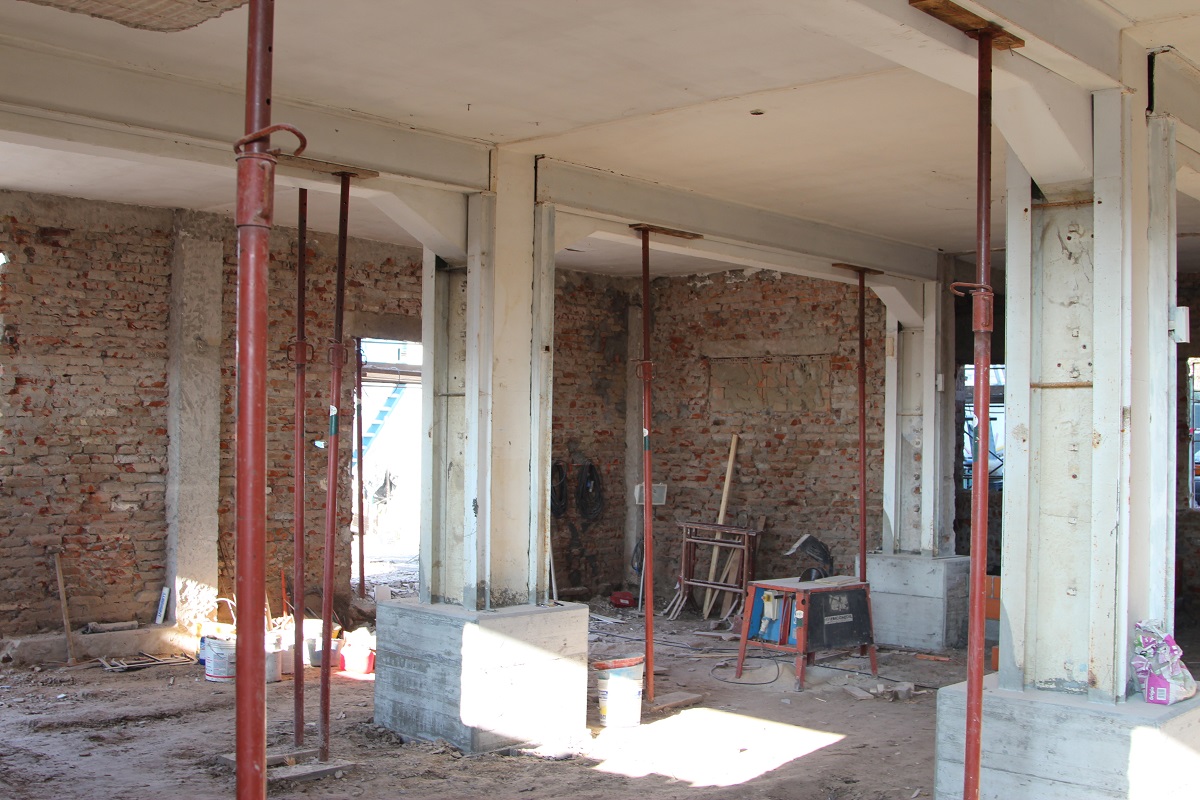 L’intervento ha visto rigenerare completamente l’intera struttura ed è consisto in: rinforzo strutturale delle fondazioni, rifacimento di tutti i sottofondi e massetti, demolizione e rifacimento della scalinata esterna e costruzione di una nuova per uso interno, rifacimento copertura e di tutta la lattoneria, demolizione e rifacimento di alcune porzioni di solaio in latero cemento, demolizione dei controsoffitti per scoprire le capriate ancora in buon stato che rimangono mantenute a vista.
