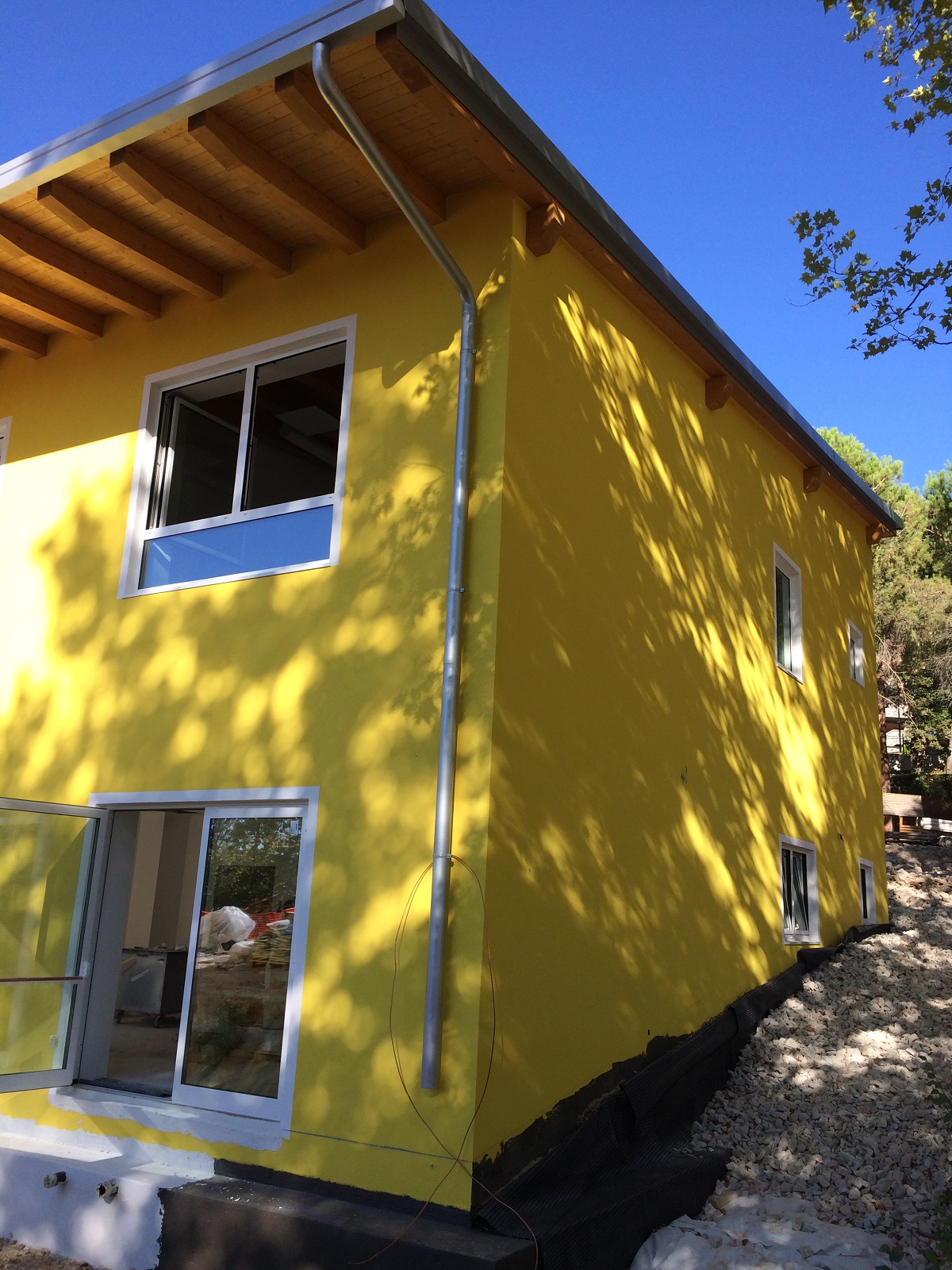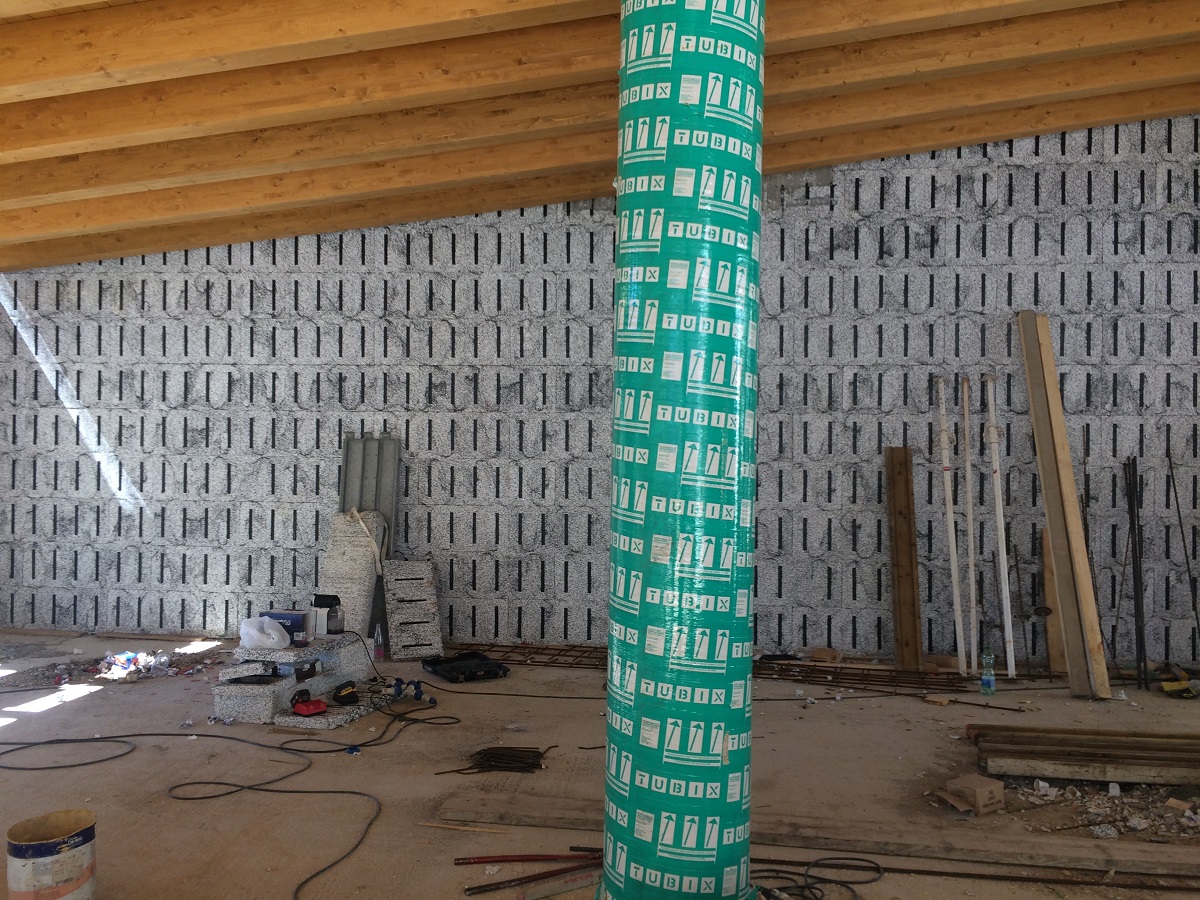 Tutte le pareti perimetrali in EPS sono state rivestite sul lato interno con lastre GYPSOTECH STD TIPO A. Il trattamento giunti è stato eseguito con lo stucco per cartongesso FASSAJOINT 1H. Per la realizzazione delle pareti divisorie interne di tipo EI 60 sono state posizionate due lastre per ogni lato del muro con lastra interna GYPSOTECH STD TIPO A e lastra esterna GYPSOTECH STD ZERO TIPO A. Questo ultimo tipo di lastra possiede una particolare carta esterna con basso potere calorifico che consente di ottenere la Euroclasse A1 di reazione al fuoco, laddove vi sia tale richiesta in seguito a prescrizioni specifiche di Prevenzione Incendi come in questo caso.