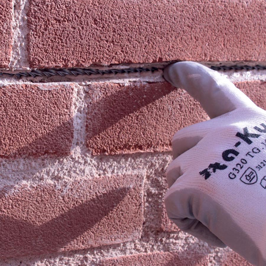 Connettore in acciaio inox AISI 304 per il collegamento a “T” tra barre elicoidali FASSA ELIWALL di diametro 6 mm installate nei giunti di allettamento e barre di diametro 10 mm installate a secco