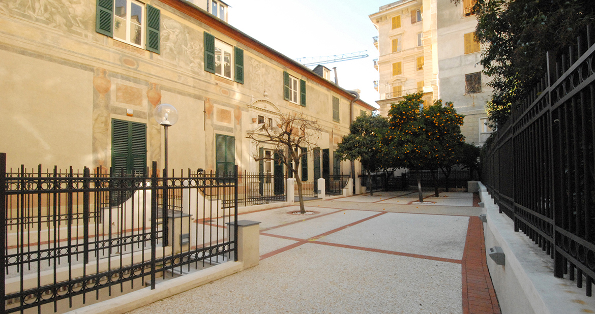 È stata restaurata la facciata nord sul giardino, le facciate interne e i cavedi; nelle due facciate su Piazza della Meridiana e Salita San Francesco, sono stati restaurati i serramenti esterni esistenti.