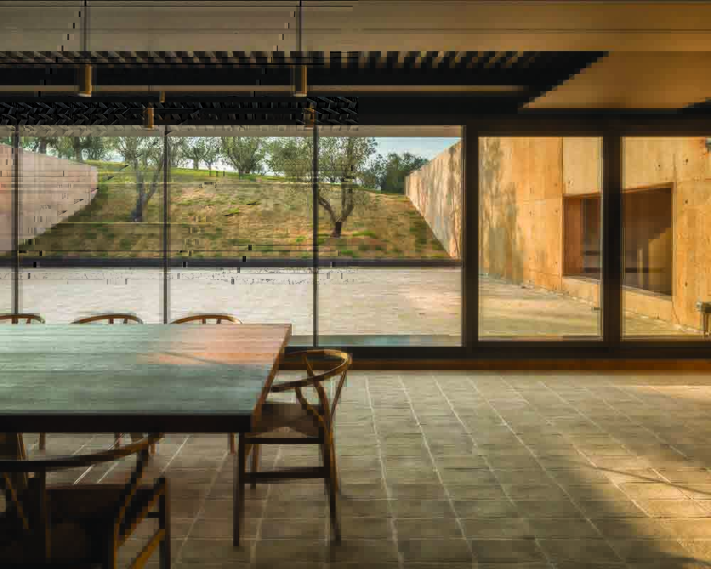 Calcestruzzo a vista, cotto, acciaio verniciato, klinker e vetro sono i materiali utilizzati per la realizzazione dell’involucro edilizio, sapientemente scelti per integrare l’architettura dello stesso con il panorama circostante. Per lo stesso motivo è stato scelto, per le pareti esterne l’edificio, un colore simil-creta, tonalità che caratterizza il paesaggio toscano, quasi a voler dissolvere la Cantina che si adagia dolcemente sul rilievo collinare adiacente.