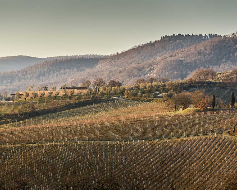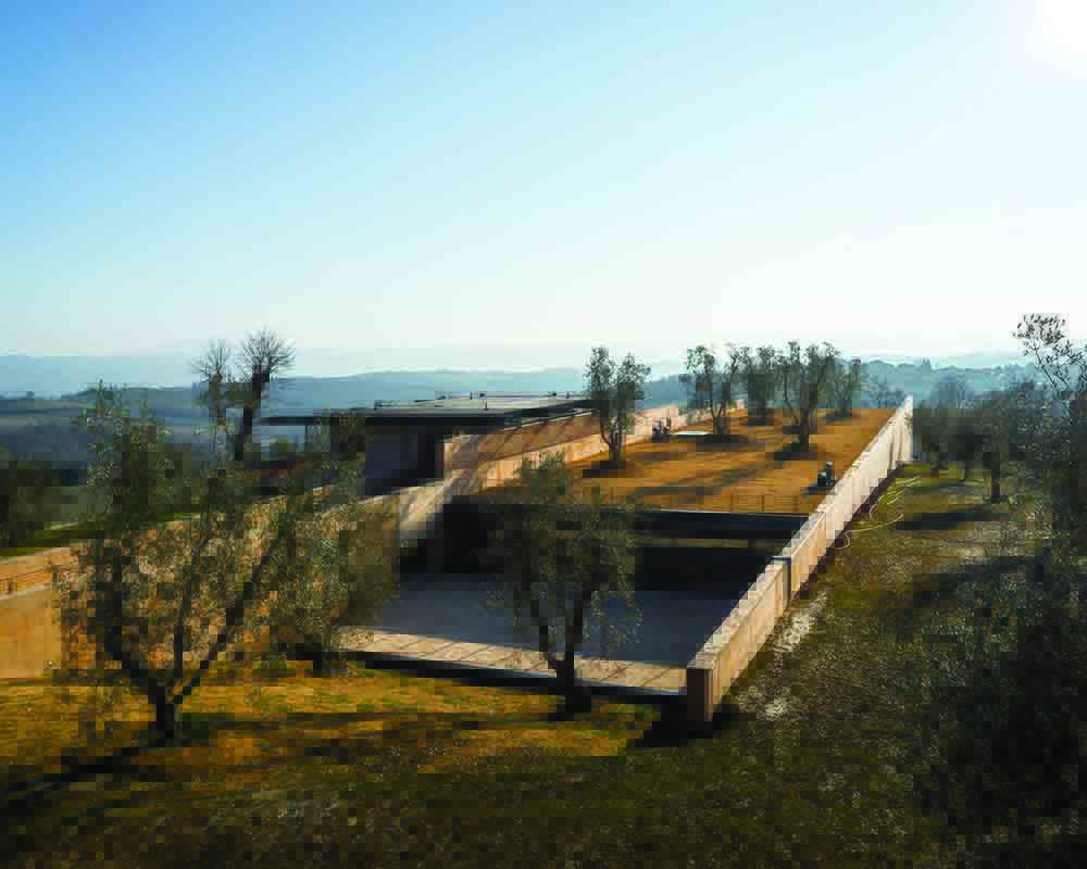 Dalla volontà di coniugare la rigorosa funzionalità dell’attività produttiva con la bellezza del territorio e la sua sostenibilità, nasce un edificio architettonico rappresentativo, progettato per contenere spazi accessibili al pubblico, locali di produzione, uffici, il tutto perfettamente inserito nel paesaggio circostante. Minimizzare l’impatto dell’attività produttiva sull’ambiente era la mission aziendale, che si è sapientemente concretizzata nel progetto di Podernuovo.