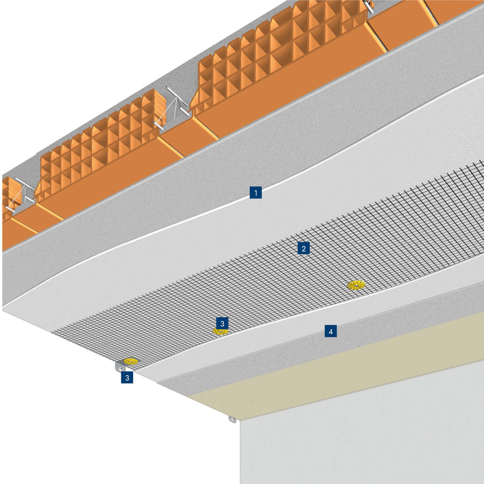 FASSAPROTECTION SOLAIO OVER è impiegato per la realizzazione di presidi antisfondellamento di solai in laterocemento intonacati.