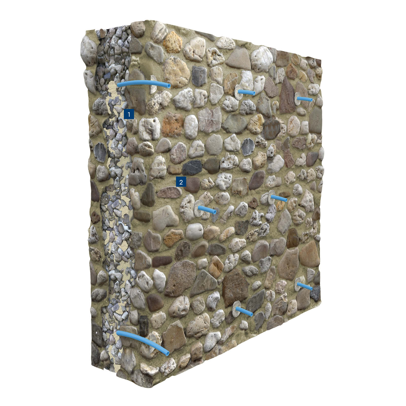 Compatibilità della boiacca alla muratura e adeguata pressione di iniezione rappresentano i capisaldi di un intervento efficace e durevole. Per questo alla speciale formulazione della boiacca si abbina una gamma di accessori ed un macchinario dedicato, frutto dell’esperienza Fassa Bortolo.